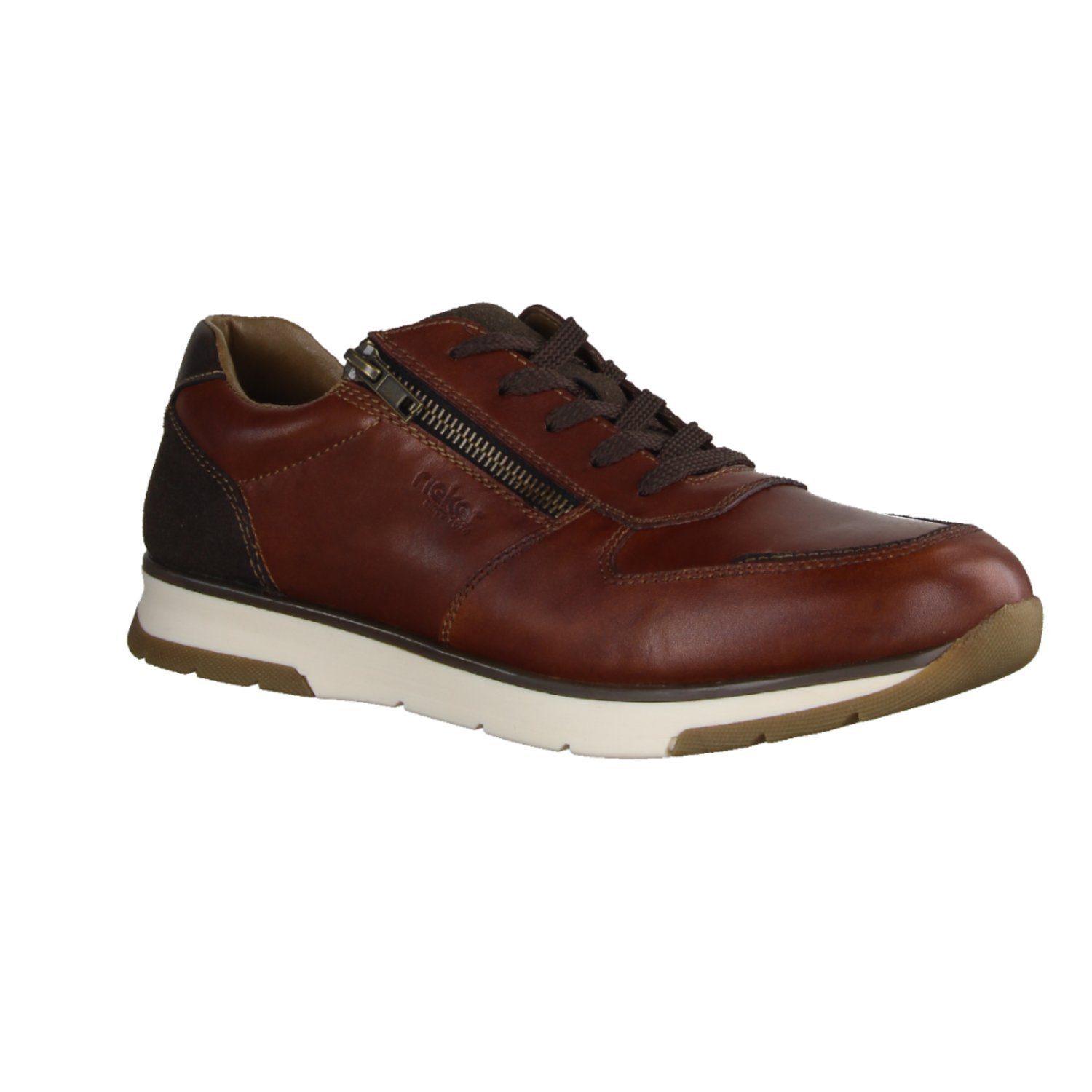 Der Rieker B2010-24 ist ein eleganter und stilvoller Herrenschuh. Er ist aus hochwertigem Glattleder in brauner Farbe gefertigt und verfügt über eine klassische Schnürung und einen seitlichen Zipper. Das Obermaterial ist glänzend und hat eine dezente Textur, was dem Schuh ein edles Aussehen verleiht. Die Innensohle des Schuhs ist weich gepolstert und sorgt für einen angenehmen Tragekomfort. Die Sohle des Schuhs ist aus strapazierfähigem Gummi gefertigt und bietet eine gute Rutschfestigkeit. Der Rieker B2010-24 ist ideal für formelle Anlässe geeignet, da er durch sein schlichtes Design und die dezente Farbe einen gepflegten Eindruck hinterlässt. Gleichzeitig ist er aber auch vielseitig kombinierbar und lässt sich sowohl zu einem eleganten Anzug als auch zu einer lässigen Jeans tragen. Insgesamt ist der Schnürer von Rieker ein stilvoller und komfortabler Herrenschuh, der sowohl optisch als auch qualitativ überzeugt. Er ist eine gute Wahl für Männer, die Wert auf Eleganz und Bequemlichkeit legen.