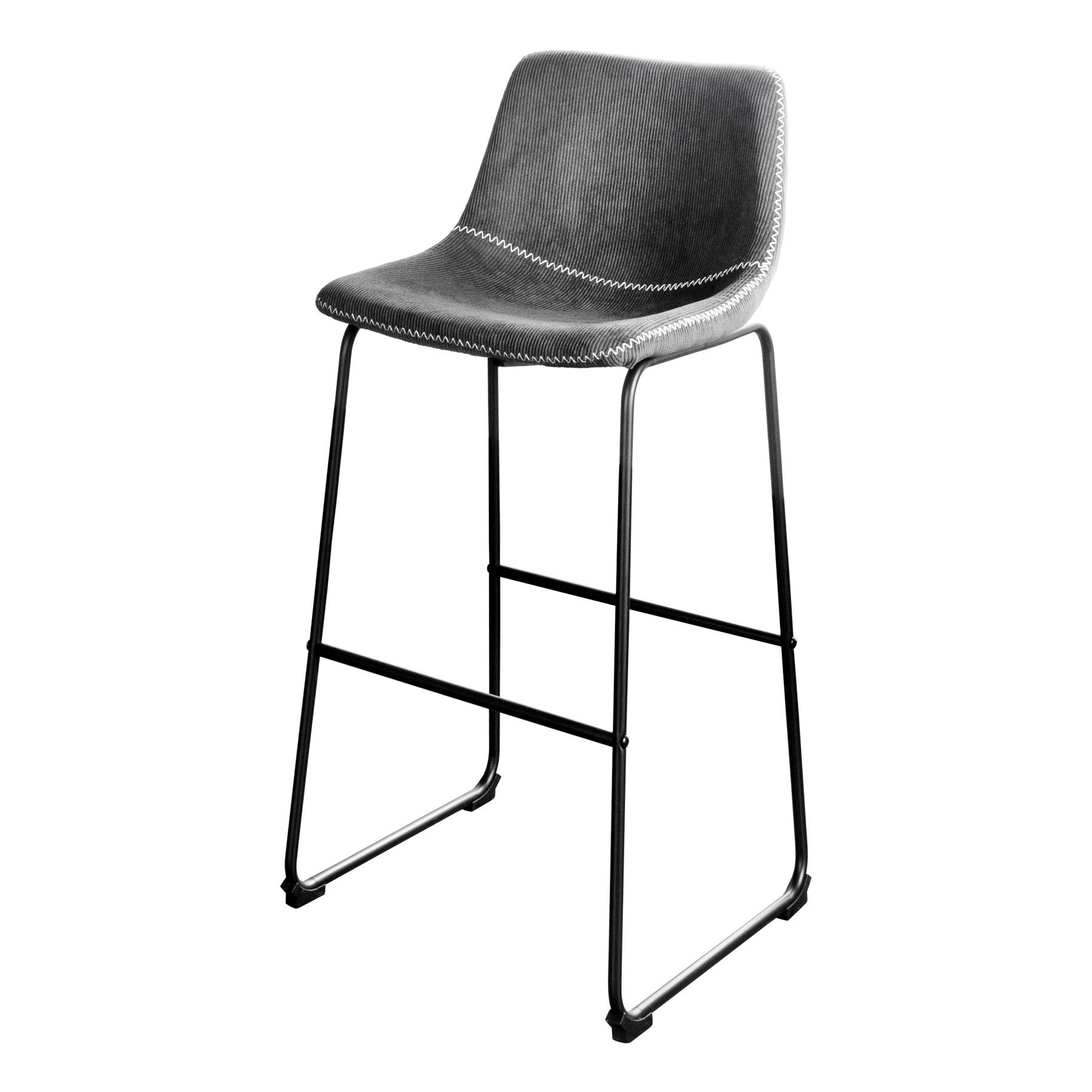 Der Barstuhl DJANGO in Grau vereint zeitgemäßes Design mit höchstem Sitzkomfort. Der weiche Cordbezug verleiht ihm eine moderne, aber gleichzeitig gemütliche Optik. Das robuste Metallgestell sorgt für Stabilität, während der strapazierfähige Cordbezug für eine angenehme Haptik sorgt und den Stuhl besonders langlebig macht. Dank der ergonomisch geformten Sitzschale und der komfortablen Rückenlehne sitzt Du auch nach mehreren Stunden noch bequem. Mit diesem stilvollen Barhocker bringst Du einen Hauch von Gemütlichkeit und urbanem Flair in Deine Küche, den Essbereich oder das Wohnzimmer!