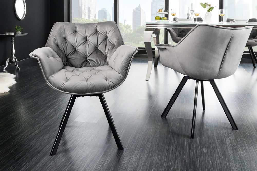 Wenn Du auf der Suche nach einem besonders bequemen Stuhl mit 180° Drehfunktion bist, dann solltest Du jetzt einmal genauer hinschauen. Unser komfortabler Retro-Klassiker, mit extra dicker Polsterung und Zierknöpfen auf der Sitz- und Rückenfläche, begeistert mit seinem zeitlosen und angesagten Design. Die schwarzen Metallbeine bilden einen tollen Kontrast zu der Sitzschale mit rost braunem Samtbezug. Nimm Platz und erlebe, wie jedes Beisammensitzen mit der Familie zu einer wahren Freude wird!