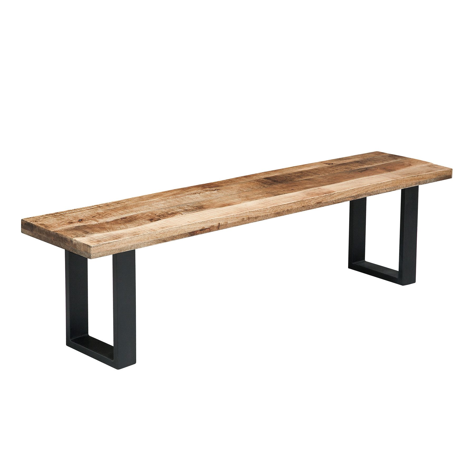Sie denken bei Mangos an süße Früchte? Wir denken an außergewöhnliches Massivholz mit unverwechselbarer Optik. Unsere Sitzbank IRON CRAFT verbindet wunderschöne, natürliche Holzoptik mit dem rauen Flair von geschwärzten Eisenkufen. Die Platte aus Mangoholz wurde in hochwertig verarbeiteter Bohlenoptik designt. Dadurch wirken die leicht abgerundeten Bohlen gemeinsam als einzigartige Tischplatte mit tollen, haptischen Eigenschaften und es wird die einzigartige Maserung des Holzes besonders toll betont. Zusammen mit den Eisenkufen entsteht so ein kantiges Industrial Design, das in jedem Zimmer zu einem Eyecatcher wird.