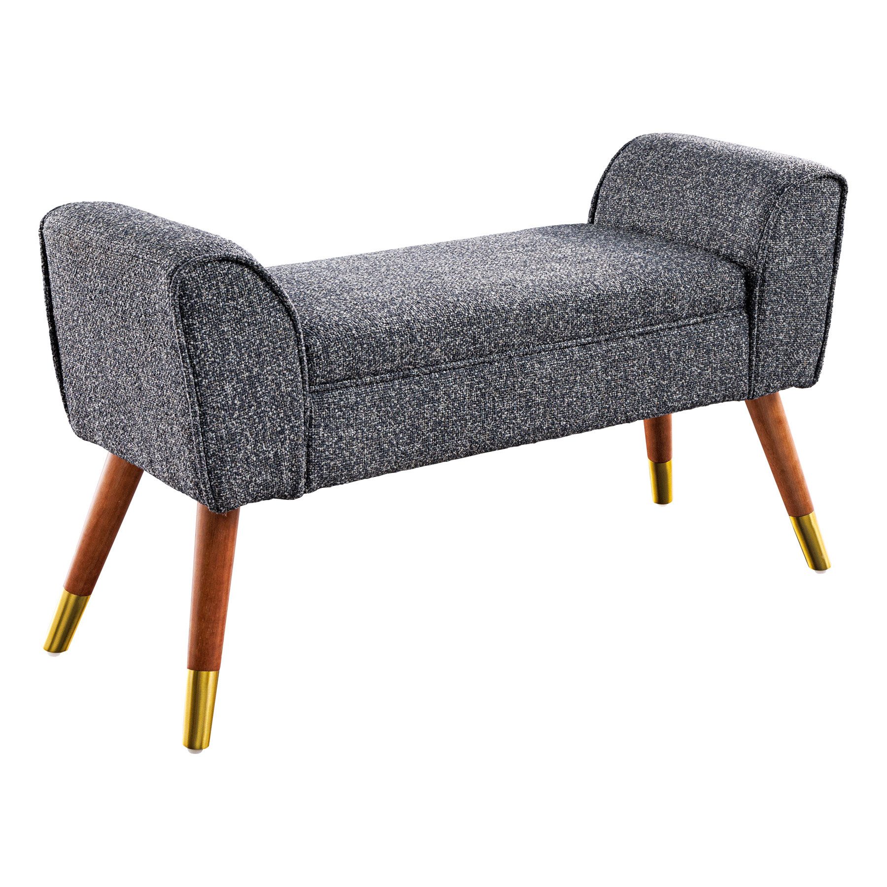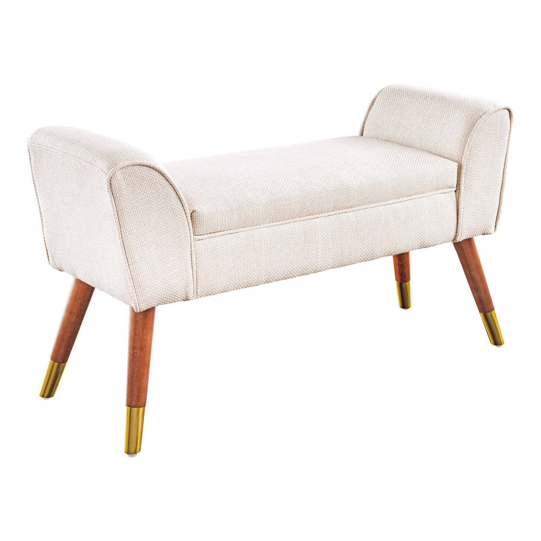 Die Sitzbank SCARLETT verbindet Eleganz und Funktionalität auf harmonische Weise und wird zum Highlight in Deinem Zuhause. Mit ihrem strapazierfähigem Bezug aus Strukturstoff fügt sie sich mühelos in verschiedene Einrichtungsstile ein und strahlt zeitlose Eleganz aus. Die stabilen Beine, verziert mit goldenen Fußkappen, setzen edle Akzente und runden das Design stilvoll ab.