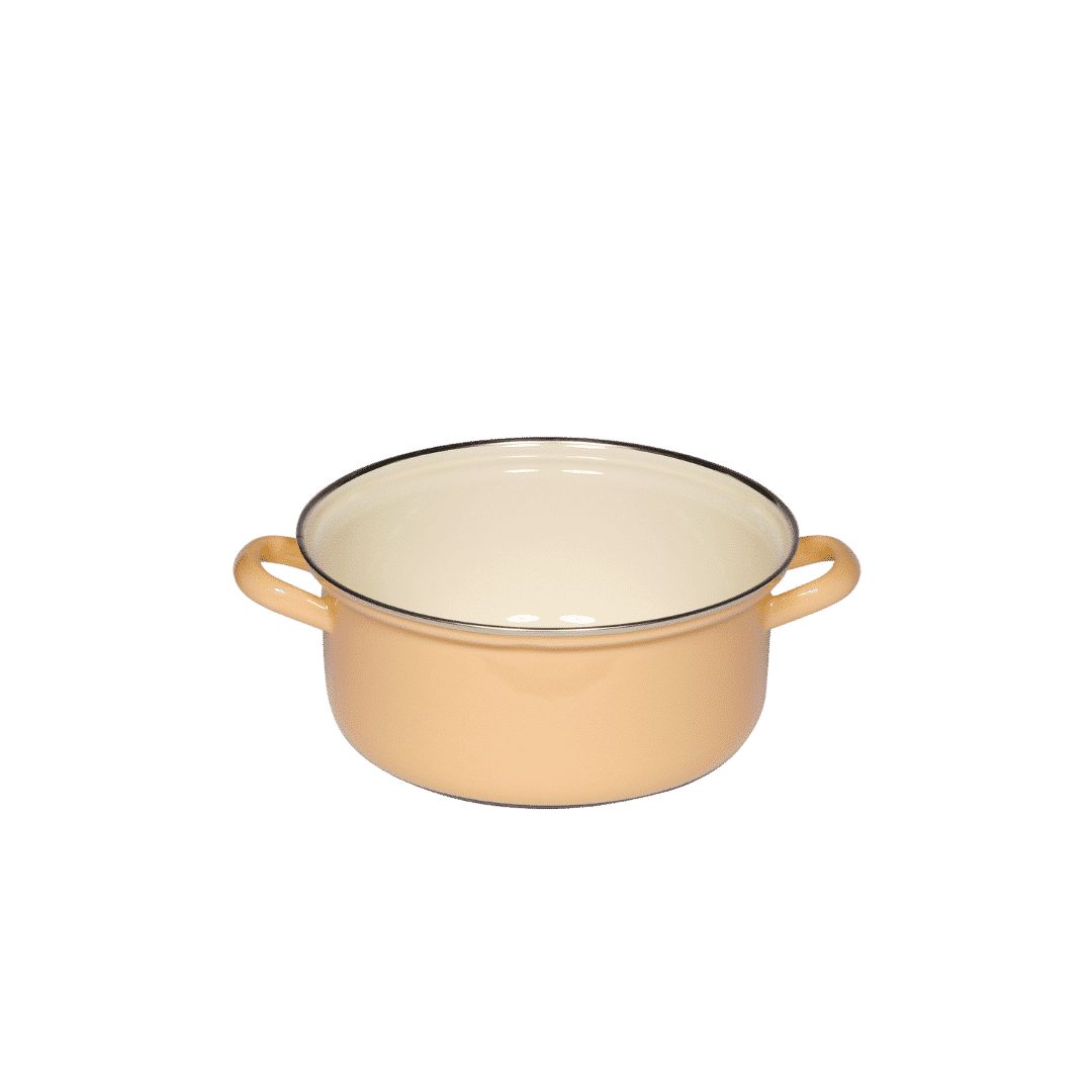 Der Werkstoff Emaille besteht aus Eisen, das bei hohen Temperaturen mit Glas verschmolzen wurde, also aus natürlichen Rohstoffen. Dieser Kochgeschirr aus Emaille kann auf allen Herdarten (Gas, Elektro, Glaskeramik, Induktion und sogar über offenem Feuer) verwendet werden. Dank des Eisenkerns wird die Wärme schnell geleitet und dann gespeichert: für nachhaltiges, energiesparendes Kochen.