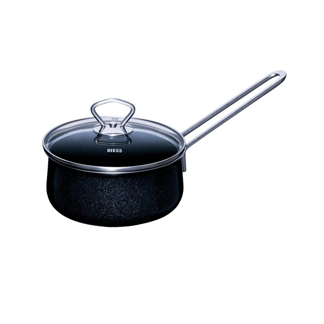 Der Werkstoff Emaille besteht aus Eisen, das bei hohen Temperaturen mit Glas verschmolzen wurde. Riess Produkte aus Emaille können auf allen Herdarten (Gas, Elektro, Glaskeramik, Induktion und sogar über offenem Feuer) verwendet werden. Danke ihres Eisenkerns leitet die Emaille die Wärme blitzschnell und speichert sie nachhaltig für ein energiesparendes Kochen. Perfekte Hygiene dank der porenlos, glatten Oberfläche aus Glas. Emaillegeschirr wird außerdem für Nickelallergiker empfohlen.