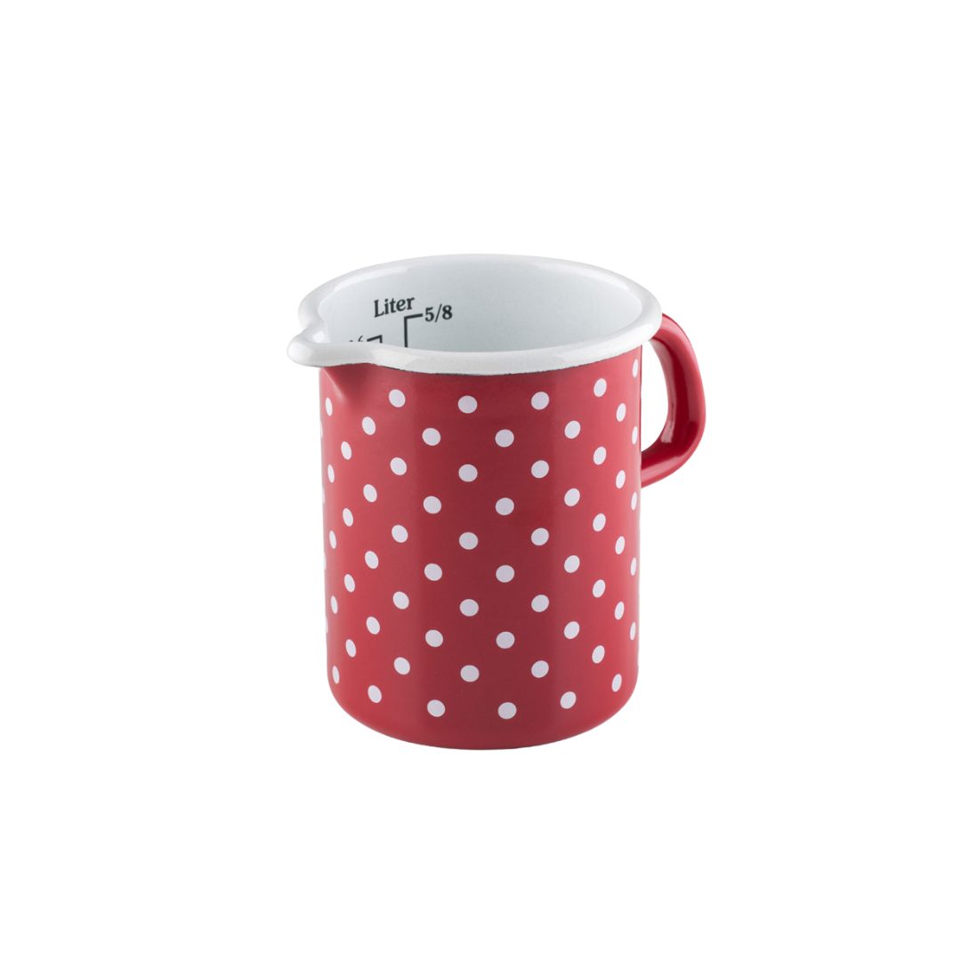 Erlebe Präzision in der Küche mit dem Pünktchen Rot Küchenmaß von Riess! Dieser elegante Messbecher ist ideal zum Portionieren von Zutaten wie Mehl, Zucker, Milch und anderen Flüssigkeiten, ob heiß oder kalt. Die beiden Skalen an der Innenseite – in Centiliter sowie in ¼ oder 1/8 Liter – machen das Abmessen kinderleicht und präzise.