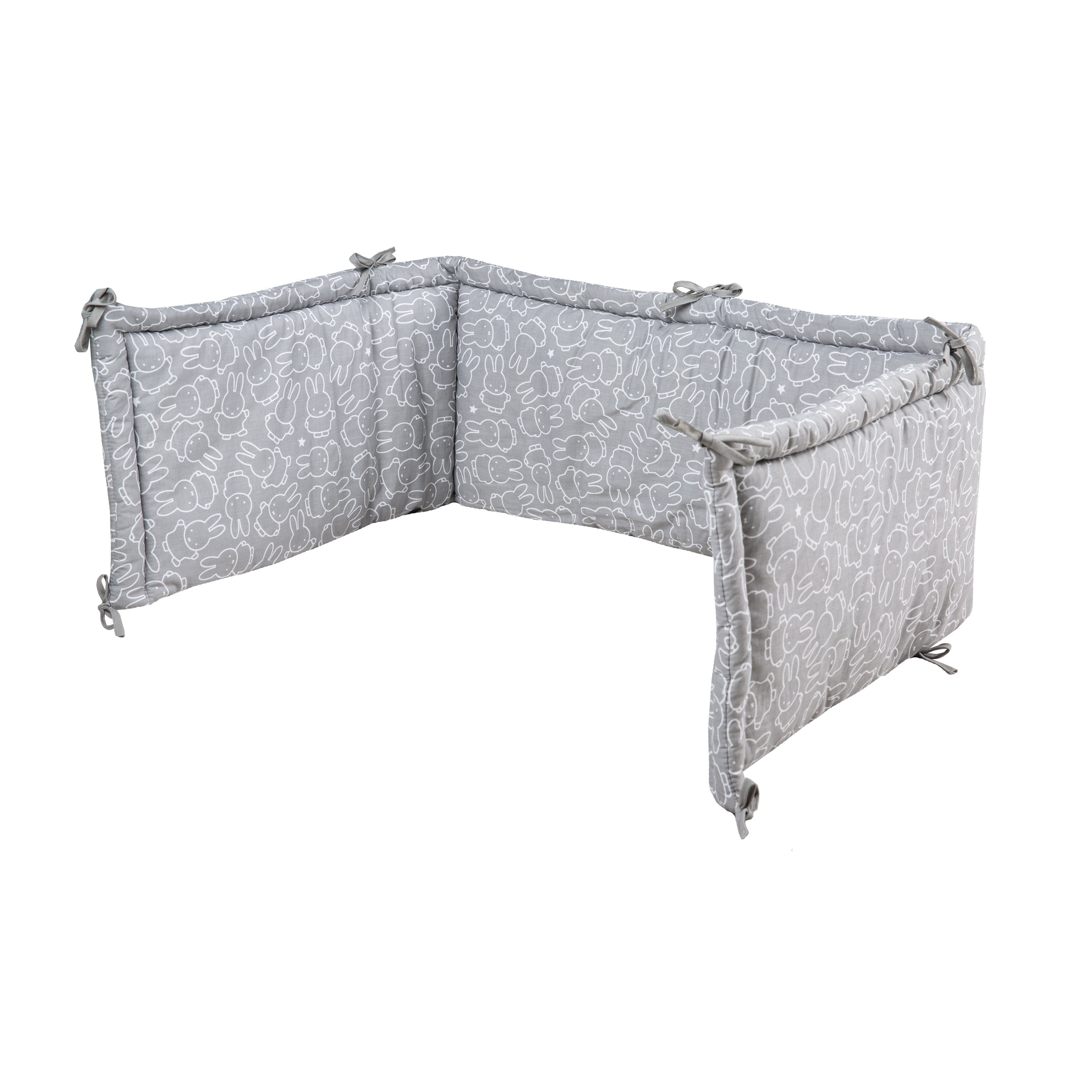 Das roba Nestchen „miffy®“ sorgt für Sicherheit und Geborgenheit im Babybett und ist mit seinem grau weißen miffy-Design ein Highlight im Babyzimmer. Gerade Babys haben ein großes Kuschelbedürfnis und lieben es gemütlich, weich und warm. Mit diesem Nestchen fühlt sich Ihr kleiner Liebling richtig wohl und ist vor Zugluft geschützt. Das gewebte Babynest gibt Ihrem Baby die nötige Nestwärme und sorgt für liebevolle Geborgenheit. Das Nestchen polstert die Gitterstäbe im Kopfbereich des Babybettchens ab und sorgt dafür, dass die kleinen Gliedmaßen Ihres Babys im Inneren des Bettchens bleiben. Всі verwendeten Materialien des Babynestchens sind schadstoffgeprüft und zertifiziert. Zusätzlich werden sie regelmäßig während der Herstellung überprüft. Die Bettumrandung aus 100% Baumwolle und einer Polyesterfüllung ist bei 40° C waschbar und trocknergeeignet und lässt sich mit Stoffbändern mühelos am Babybett befestigen. Passend für Babybetten 60 cm x 120 cm oder 70 cm x 140 cm. Das roba Nestchen „miffy®“ ist 170 cm lang, 28 cm hoch und 3 cm tief.