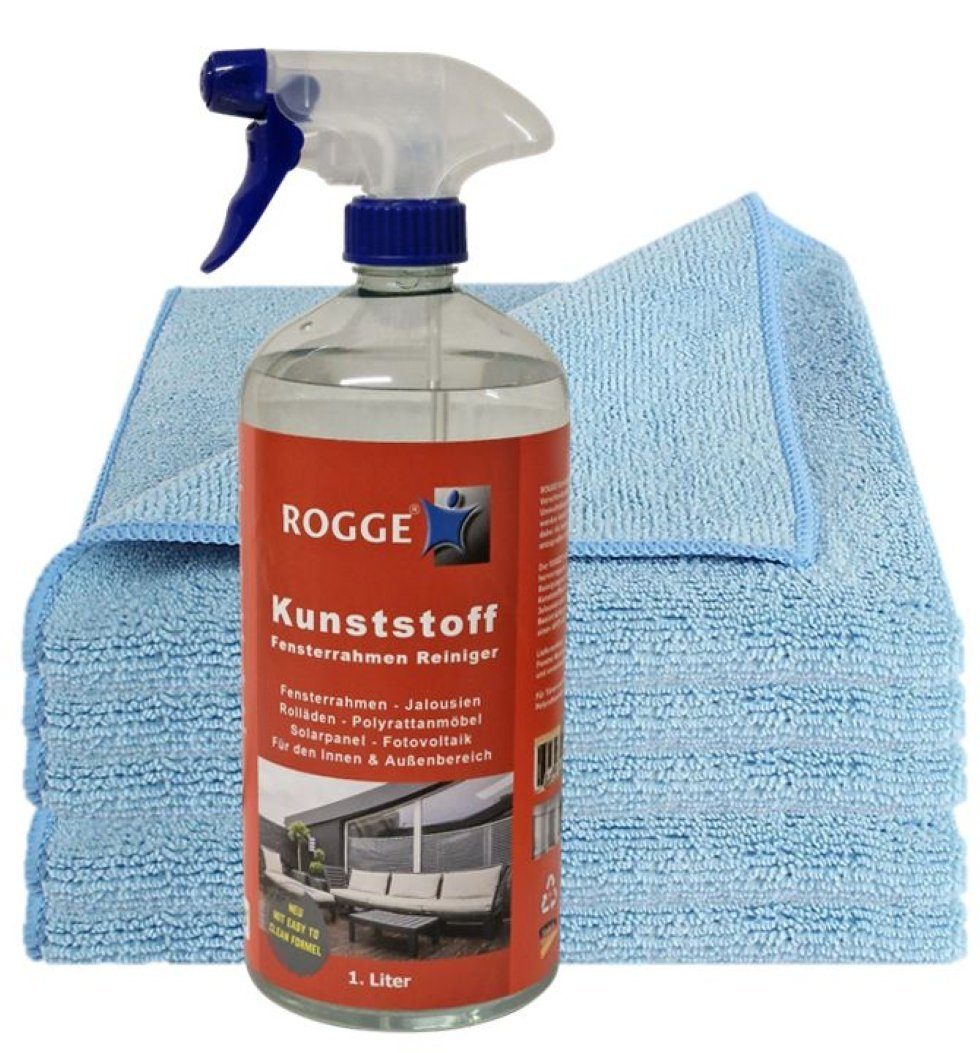 NEU! Kunststoff Fensterrahmen Reiniger SparSet All-in-One Profi Reiniger 1. Liter gebrauschsfertiger Всіsreiniger für abwaschbare Kunststoff, Metall- und Glasflächen, Rolläden, Jalousien, Fenster-, Rahmen, Türen, Stühle und Tische. 5x ROGGE Weltklasse Microfastücher 40x40cm. Auch auf durch Beschichtung geschützte oder glänzende Fußbodenbeläge einsetzbar. Angenehm duftend. Trocknet schnell und streifenfrei. biologisch abbaubar ohne Alkohol sehr sparsam effizient nachhaltig 1000ml gebrauchsfertiger Sprühreiniger nachfüllbar ROGGE Kunststoff Fenster Reiniger entfernt Verschmutzungen, Staub, Ruß, und Umweltablagerungen. Fett oder Nikotin werden dadurch schnell und effizient, ohne dabei die behandelten Oberflächen anzugreifen entfernt. Der ROGGE Premium Reiniger erzielt einehervorragende und nachhaltiige Reinigungswirkung und bewahrt dieKunststoffteile an Fenstern, Rollläden, Jalousien oder Türen vor größeren Beeinträchtigungen und erziehlt zugleich einen ANTI-STATIK-EFFEKT. Lieferumfang: 1 x 1 l ROGGE Kunststoff Fenster Reiniger / Effektiver - sparsamer und umweltschonender Premium Reiniger. Für Türen und Rollläden, Kunststoff- und Polyrattanmöbel, Solar & Fotovoltaik Panele inkl. 5x Professional Microasertücher 40x40cm. Der NEU! Kunststoff Fensterrahmen Reiniger SparSet ist ein All-in-One Profi Reiniger 1. Liter, der speziell für abwaschbare Kunststoff-, Metall- und Glasflächen entwickelt wurde. Mit diesem literweise gebrauchsfertigen Всіsreiniger können Sie nicht nur Fensterrahmen reinigen, sondern auch Rolläden, Jalousien, Türen, Stühle, Tische und vieles mehr. Das Set beinhaltet außerdem 5x ROGGE Weltklasse Microfastücher mit den Maßen 40x40cm, die speziell für die Reinigung von Fensterrahmen und anderen Oberflächen geeignet sind. Darüber hinaus kann der Reiniger auch auf durch Beschichtung geschützte oder glänzende Fußbodenbeläge angewendet werden, was ihn zu einem vielseitigen Reinigungsmittel für den Haushalt macht. Holen Sie sich jetzt den Kunststoff Fensterrahmen Reiniger SparSet und erleben Sie strahlend saubere Oberflächen in Ihrem Zuhause!