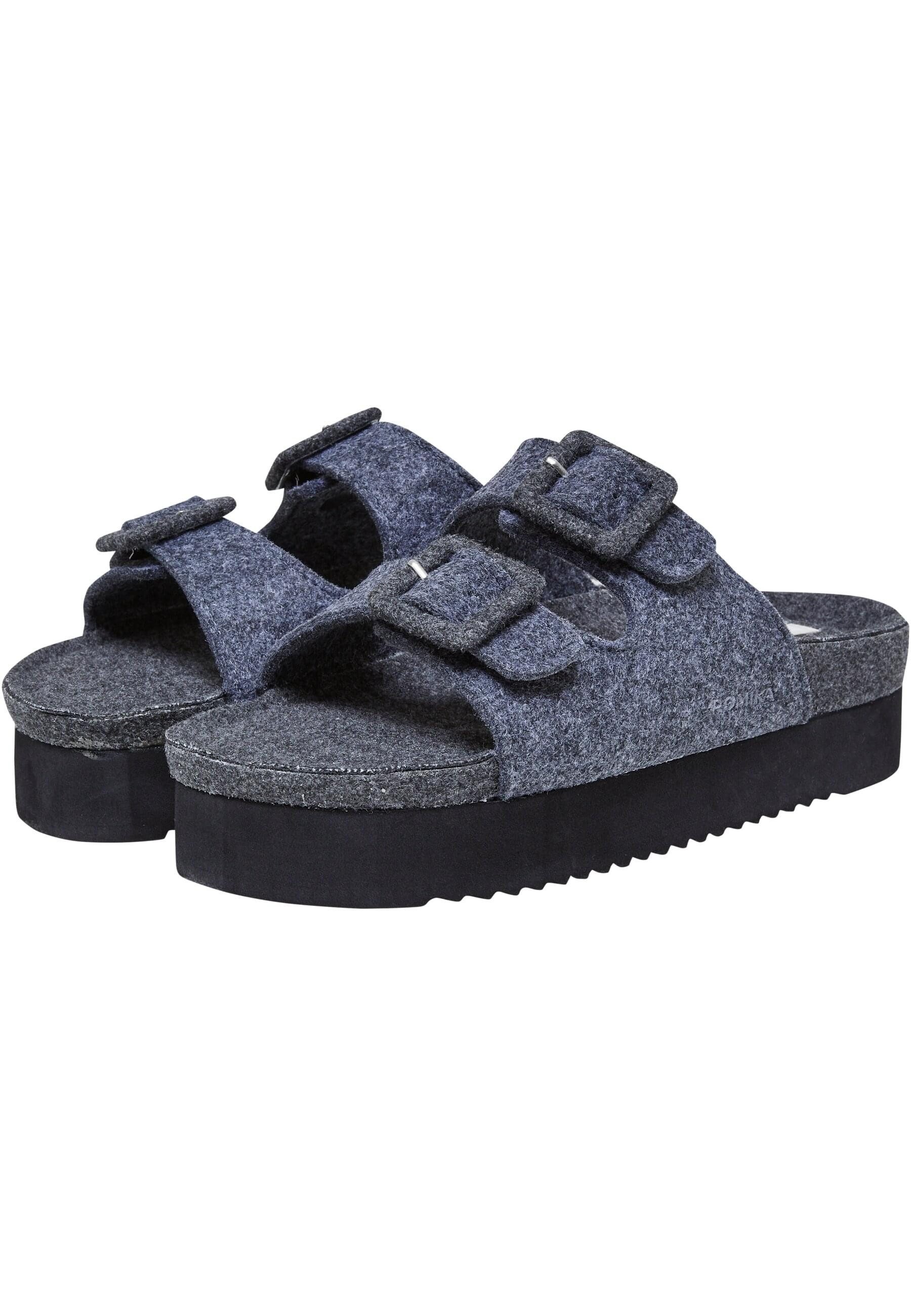 Sandalen mit Plateau-Sohle, ideal als lässiger Alltagsschuh mit markanter Silhouette und offener Zehenpartie, die für luftigen Tragekomfort sorgt. Zwei breite, verstellbare Riemen mit Schnallen ermöglichen eine individuelle Passform und stabilen Halt, während die filzartige Oberflächenstruktur einen weichen Griff vermittelt. Das erhöhte Plateau mit profilierter Laufsohle bietet zusätzliche Dämpfung und einen modernen Auftritt, die Sohle besteht aus Polyester. Die Konstruktion kombiniert unkomplizierten Slide-Komfort mit klarer, funktionaler Formgebung, die sich gut zu entspannten Looks kombinieren lässt, ohne auf festen Halt und eine definierte Standhöhe zu verzichten.