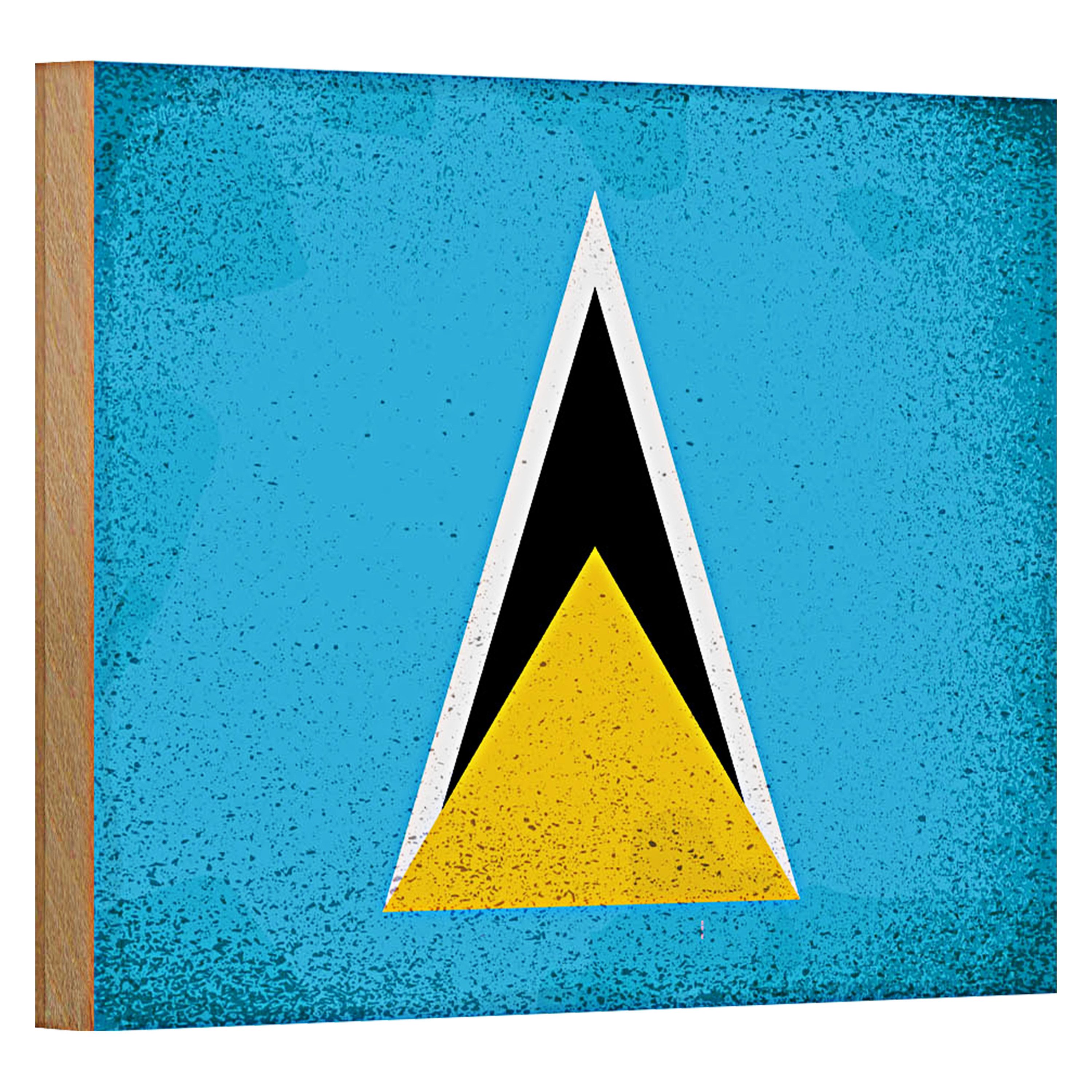 Dieses charmante Holzschild zeigt die Flagge von St Lucia in einem nostalgischen Vintage-Stil.