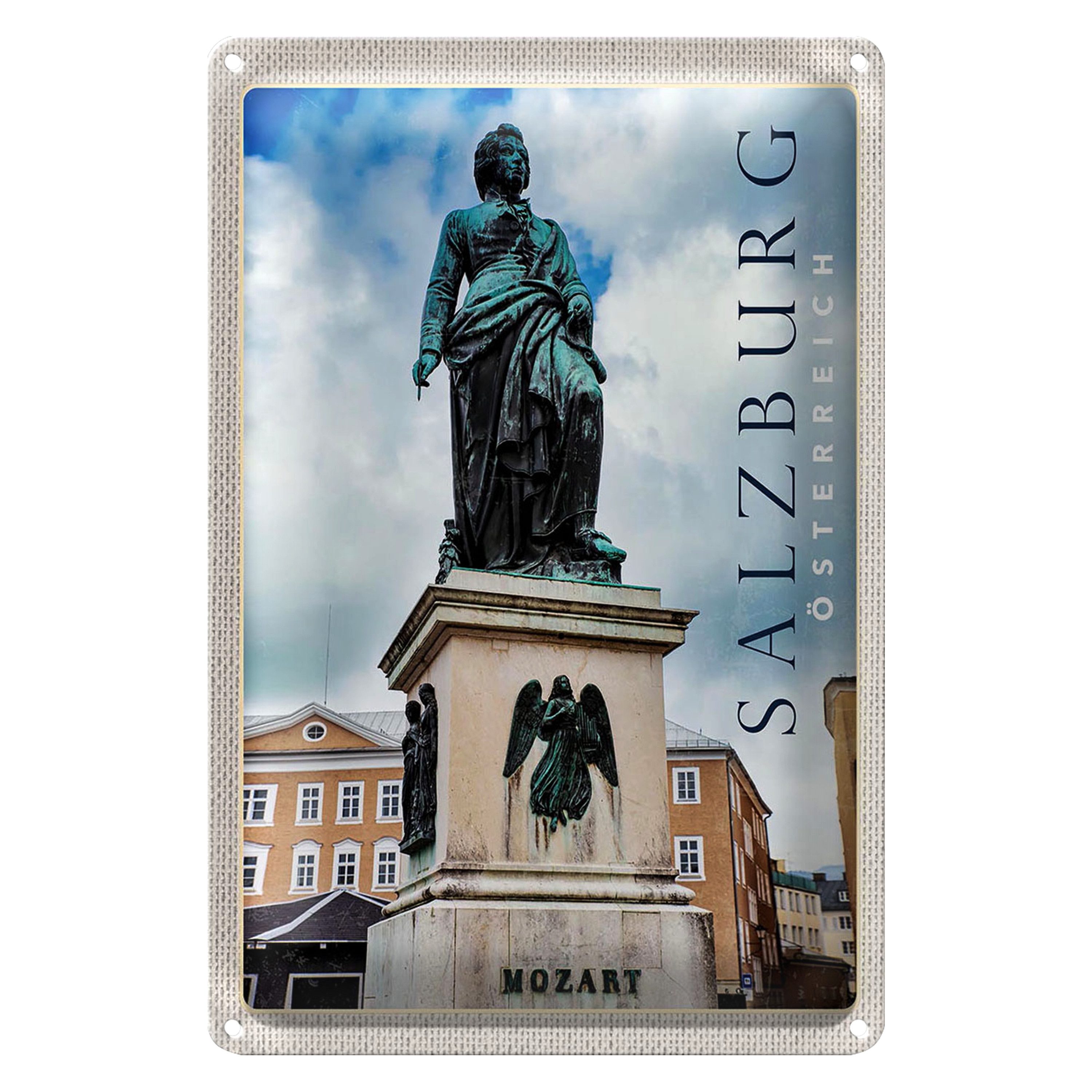Tauchen Sie ein in die kulturelle Pracht Salzburgs mit diesem charmanten Blechschild. Die majestätische Mozart-Statue erhebt sich vor einem dramatischen Himmel, eingefangen in einem zeitlosen Design. Perfekt für Liebhaber klassischer Musik und österreichischer Kultur, bringt dieses Schild einen Hauch von Eleganz und Geschichte in jeden Raum. Ein Muss für Sammler und Reisende, die die Schönheit Salzburgs schätzen.Dieses Blechschild eignet sich perfekt als dekoratives Element für Musikliebhaber, Reisende und Kulturinteressierte. Es verleiht jedem Raum einen Hauch von österreichischer Eleganz und Geschichte.Schild aus qualitativ hochwertigem Stahlblech. Keine scharfkantigen Stellen dank rundum umgeschlagene Kanten. Abgerundete Ecken mit vorgebohrten Löchern für eine einfache Befestigung an Wänden, Türen, Zäunen usw.