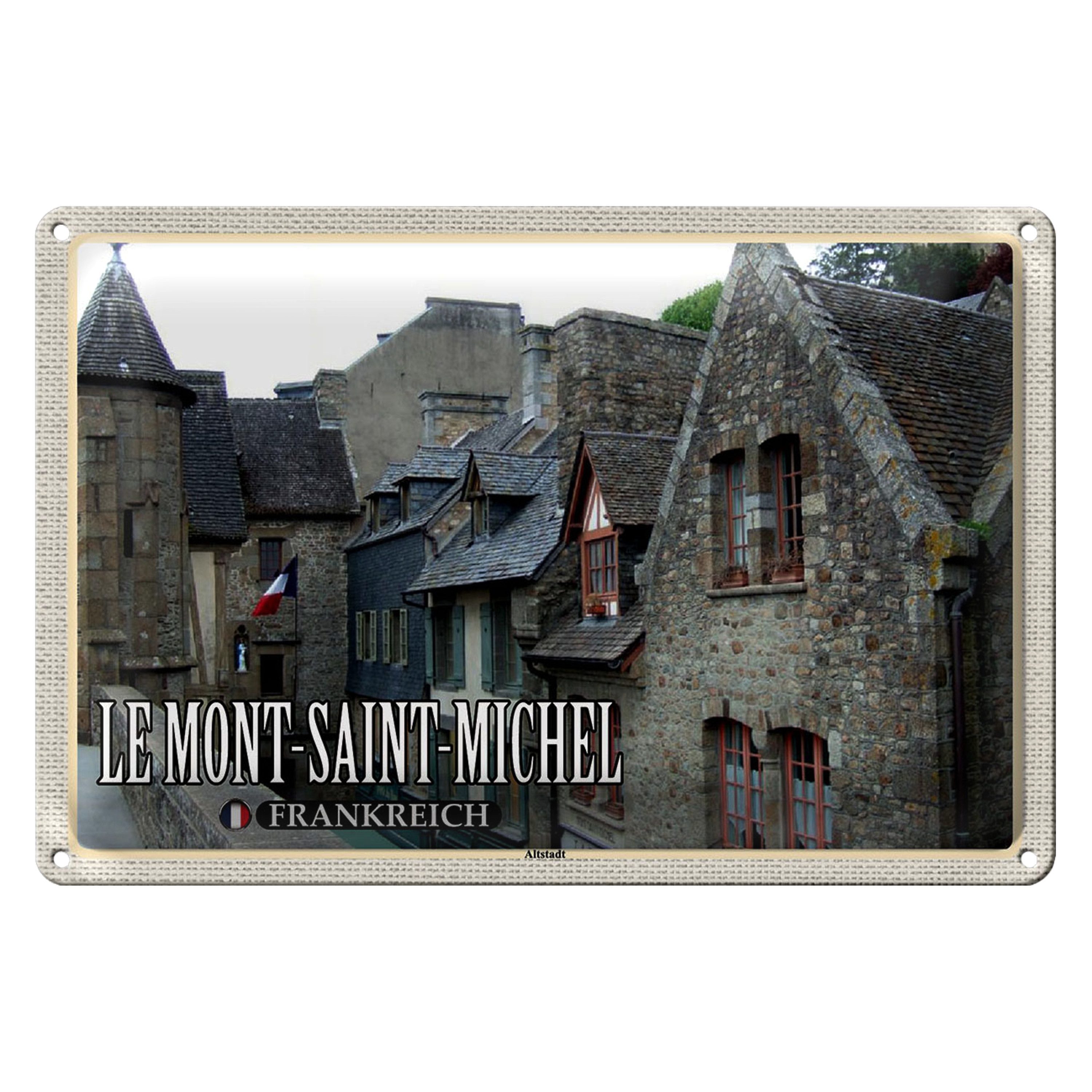 Roomando Metallschild Reise 18x12cm Le Mont-Saint-Michel Frankreich Altstadt