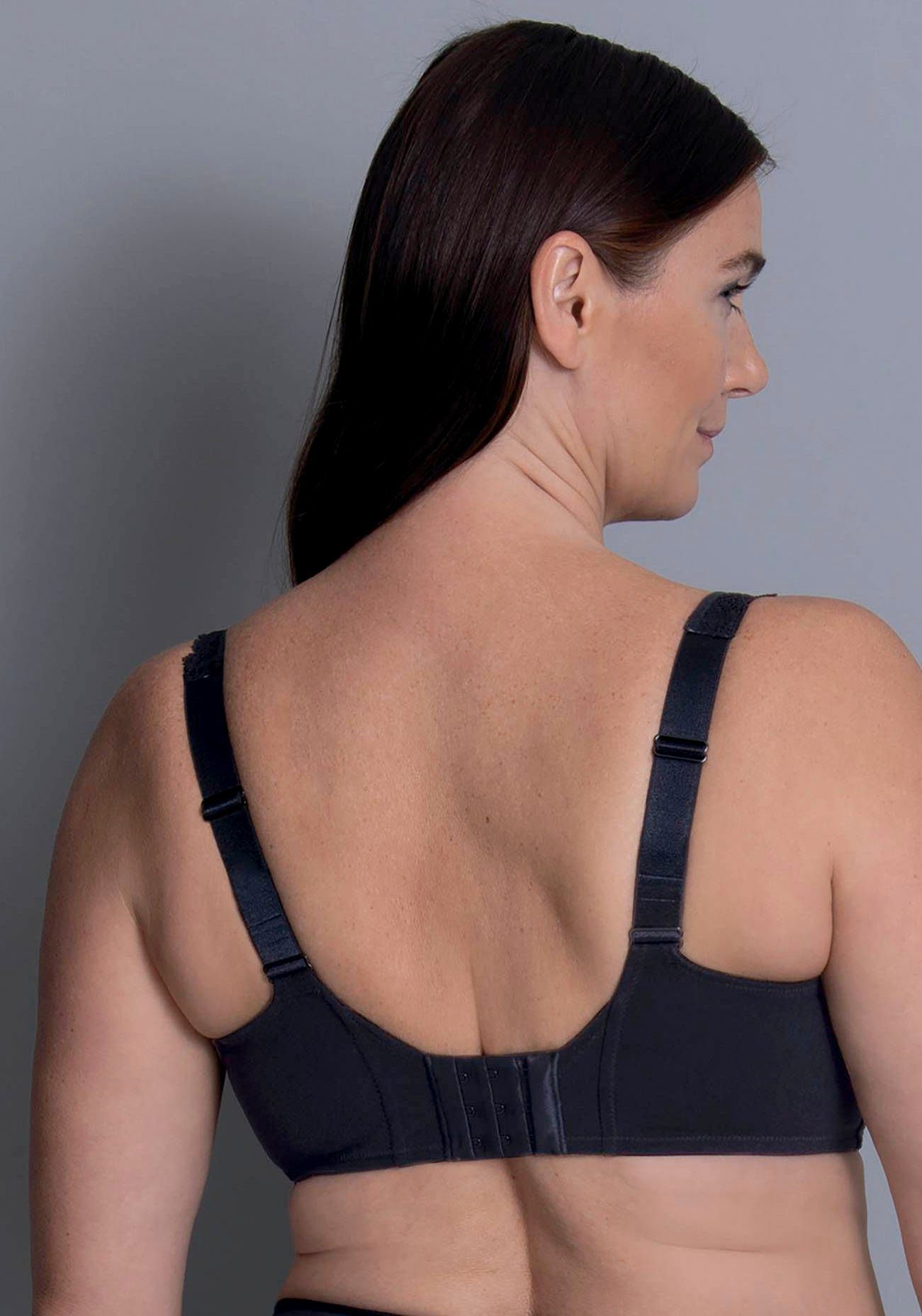 Dieser Bügel-BH aus der Serie Selma von Rosa Faia ist ebenso sportiv wie trendbewusst. Der BH mit Bügel gibt dir den notwendigen Halt. Wegen des Entlastungsrückens ermöglicht der BH eine Unterstützung der Nacken- und Schulterregion. Erleichterung bekommt deine Schulterpartie durch die breiten, mit Spitze versehenen, elastischen und verstellbaren Träger. Die Spitze setzt einen besonderen Akzent. Du fixierst den BH hinten mit Haken und Ösen.