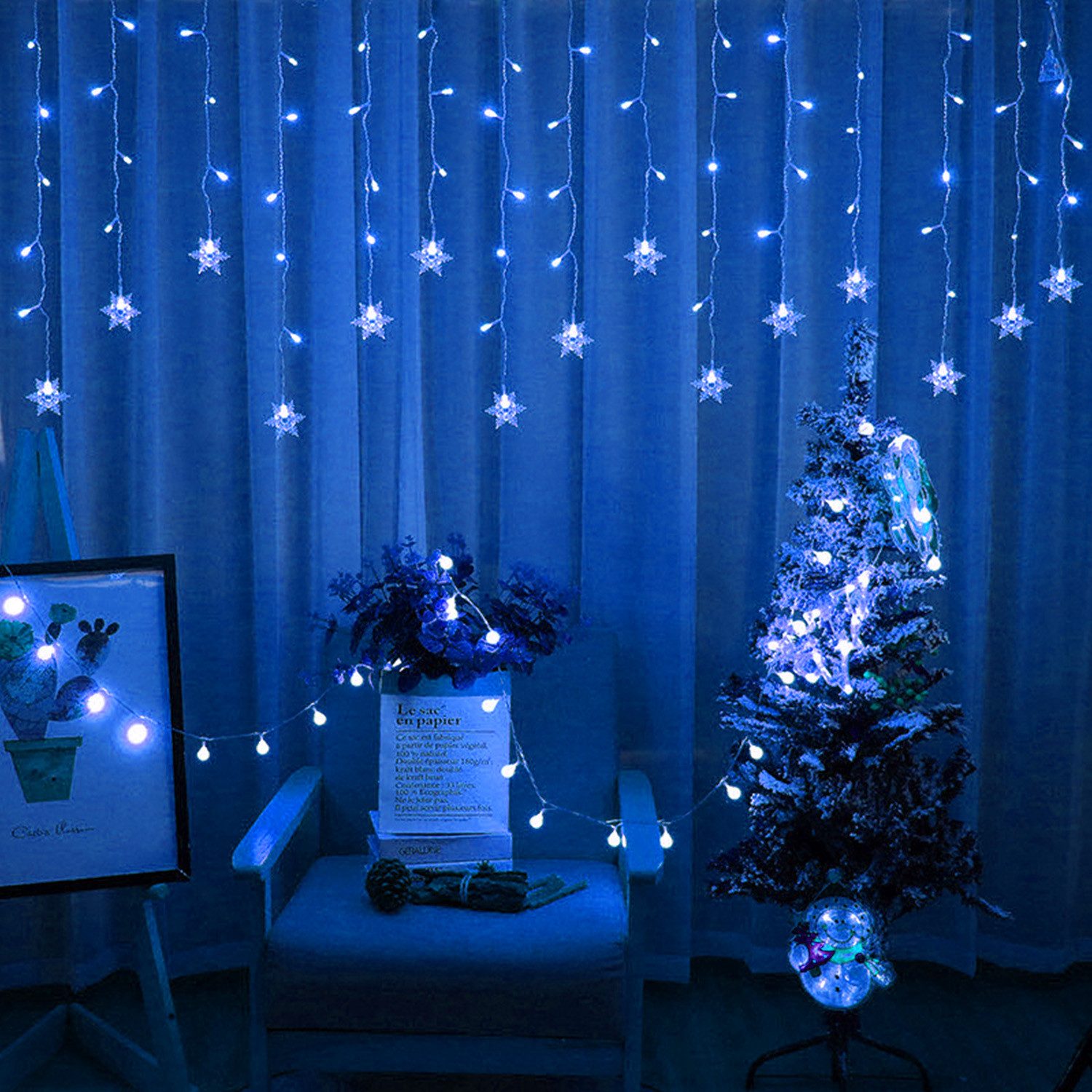 1 x Schneeflocke LED Vorhang Lichterkette