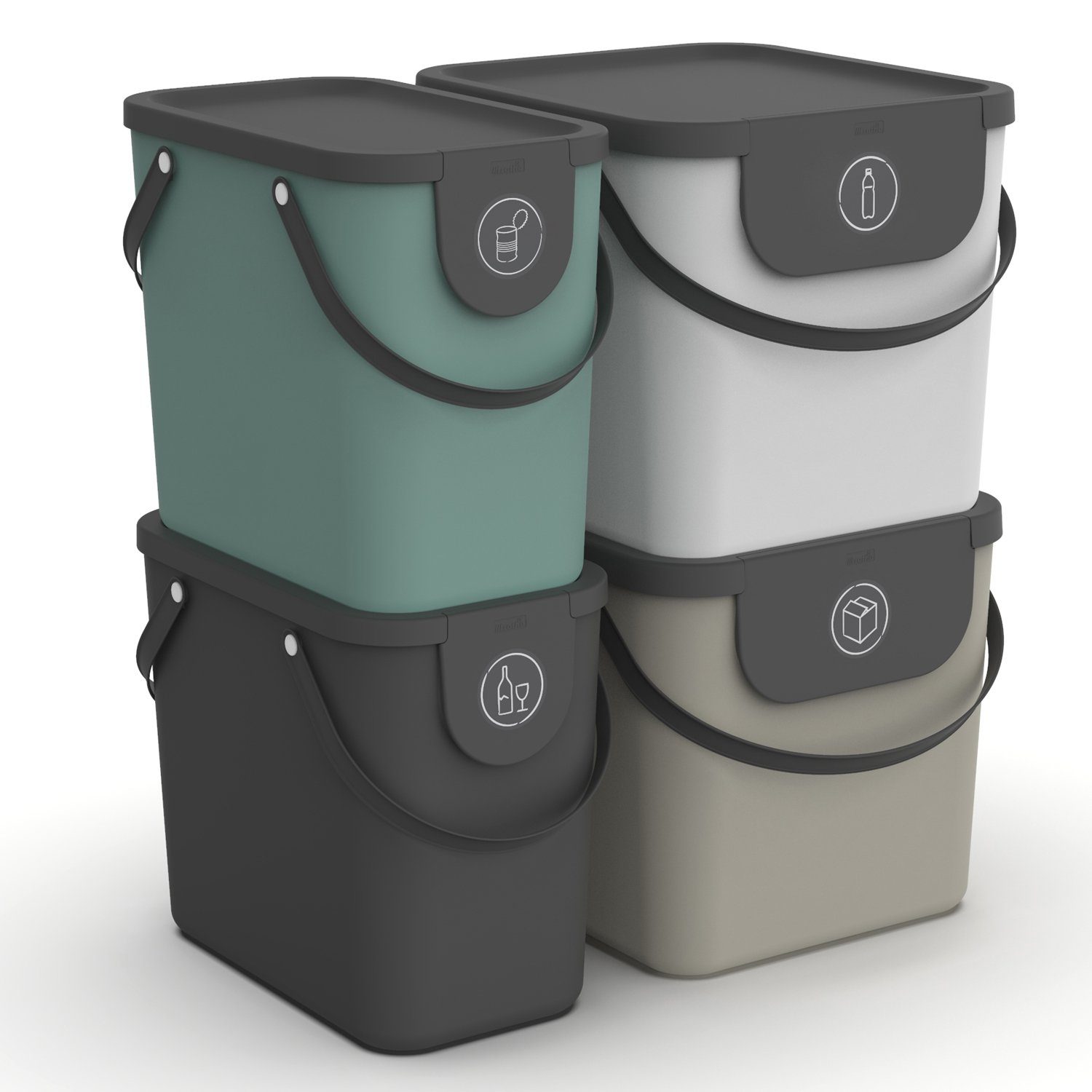 Das Müllsystem mit Deckel bietet Ihnen die Möglichkeit, den Abfall im Haushalt ganz einfach zu trennen. Die meisten Recyclingsysteme sind zwar praktisch, aber so unschön, dass man sie buchstäblich verstecken muss. Mit unseren modularen Behältern setzen wir dem ganzen ein Ende. Durch die Griffe können Sie die Abfalleimer auch bequem transportieren, etwa um den Inhalt auf dem Recyclinghof oder in der Mülltonne zu entleeren. Sie sind einfach mit Wasser und Spülmittel zu reinigen. Mit den praktischen Aufkleber, die mitgeliefert werden und auf der Vorderseite des Deckels befestigt werden können, sehen Sie bereits auf den ersten Blick, in welchen Mülleimer was gehört. Dank der Deckel lassen sich die Abfalleimer gut verschließen, sodass keine Gerüche nach außen weichen.