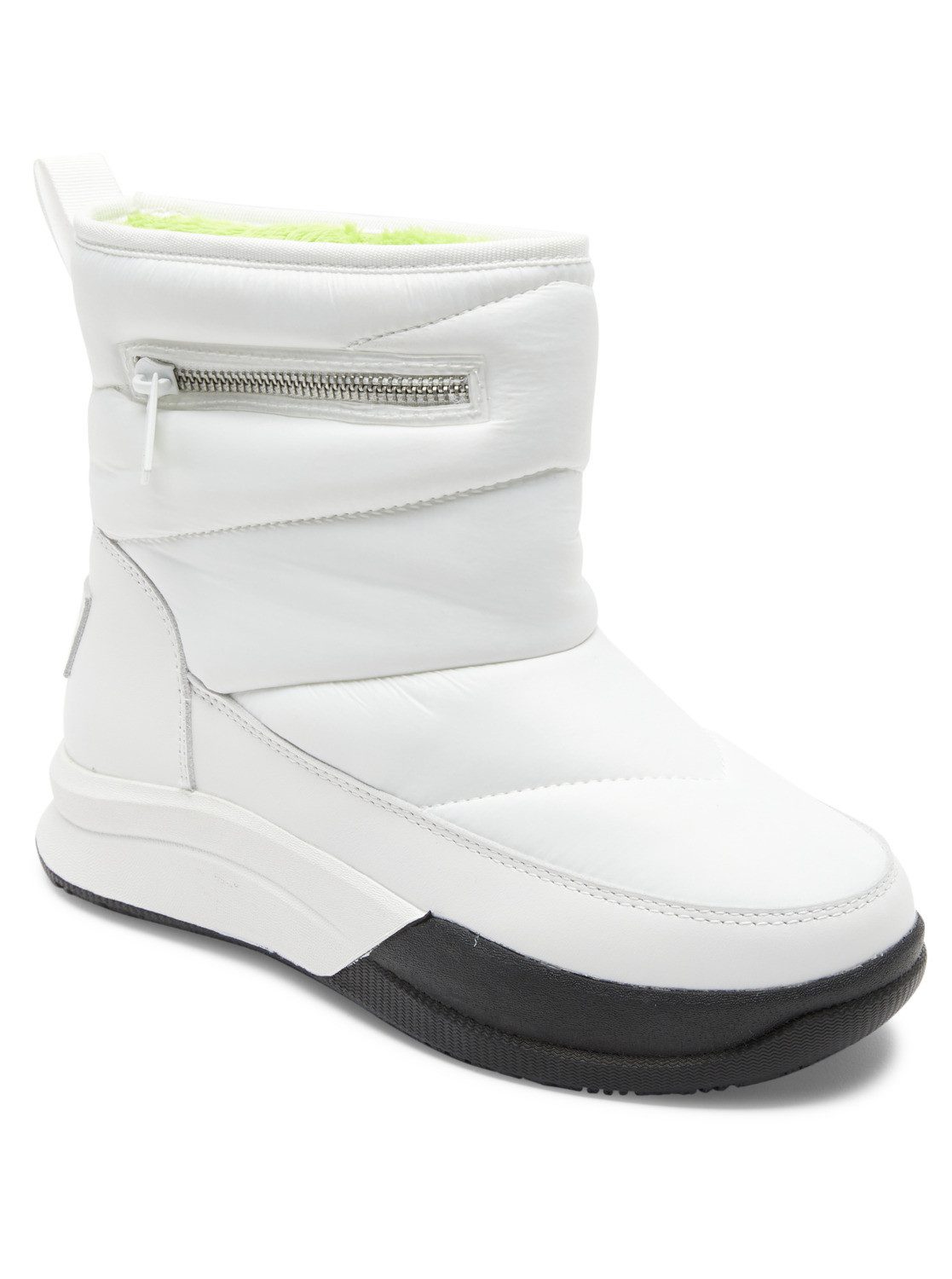 roxy ROWLEY x ROXY Pow Pow - Winter Boots for Women ROWLEY x ROXY Pow Pow - Winterstiefel für Frauen Winterstiefel für Frauen. Die Eigenschaften dieses Produkts sind: Umweltfreundliches Material: Obermaterial aus Nylon, Polyester und Leder, Pull-on-Stiefel mit dekorativer seitlicher Tasche mit Reißverschluss und Fersenschlaufe für leichtes An- und Ausziehen, 5K DryFlight-Technologie für gute Imprägnierung und Scotchgard-Behandlung, WarmFlight-x3-Technologie für extrawarme und atmungsaktive Isolierung (200 g/m2), Fußbett aus recyceltem Kunstfell, Federnde TPE-Innensohle für Komfort den ganzen Tag über, Gummilaufsohle mit einem Blumen- und Fischgräten-Profil und eine geschwungene Sidewall, die dir etwas Höhe verleiht, Schaft mit Futter aus recyceltem Kunstfell, Absatz: 37 mm und Logo: Logopatch an der Ferse.