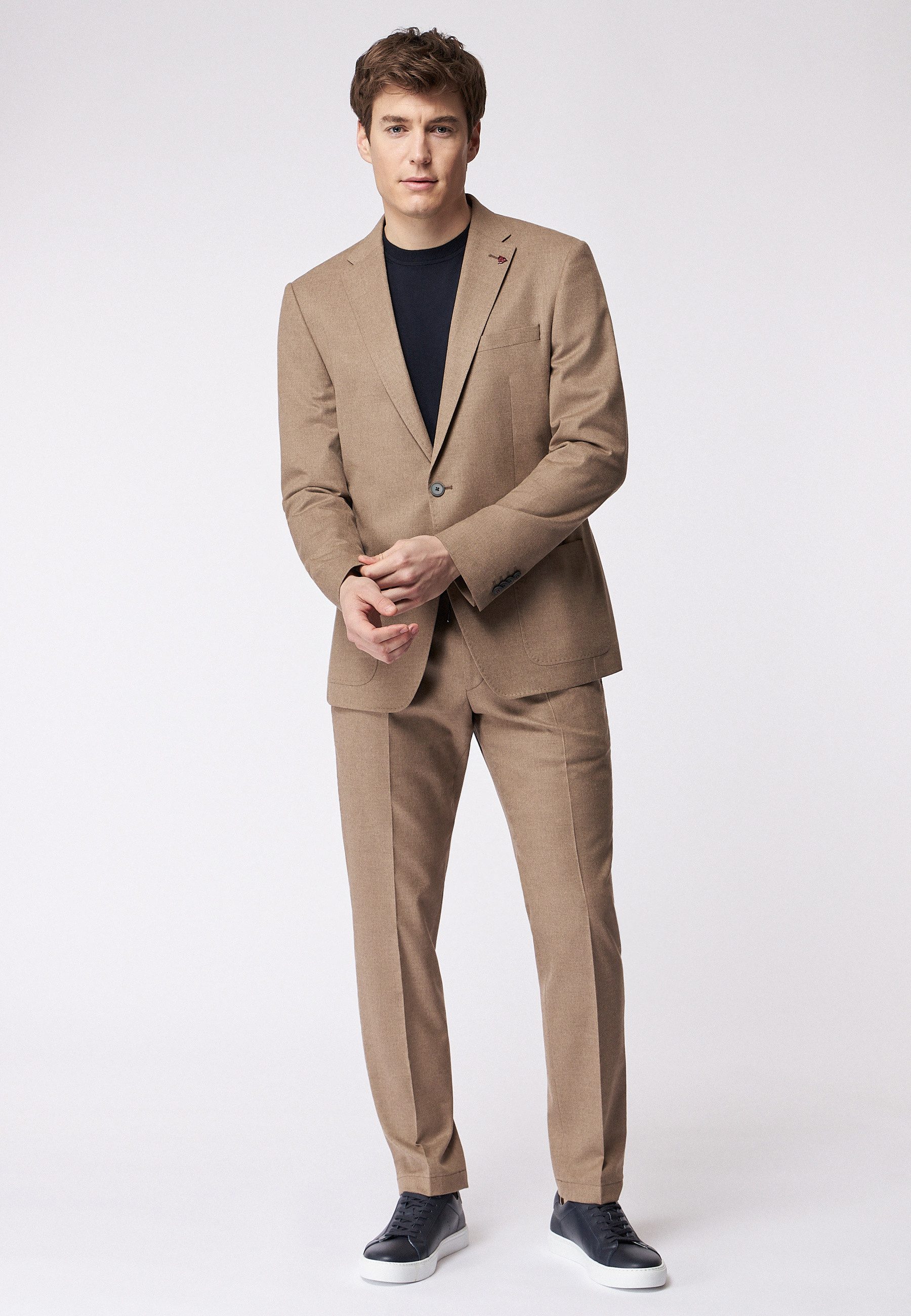 Materialzusammensetzung | 51% Polyester, 27% Viskose, 20% Schurwolle, 2% Elasthan |