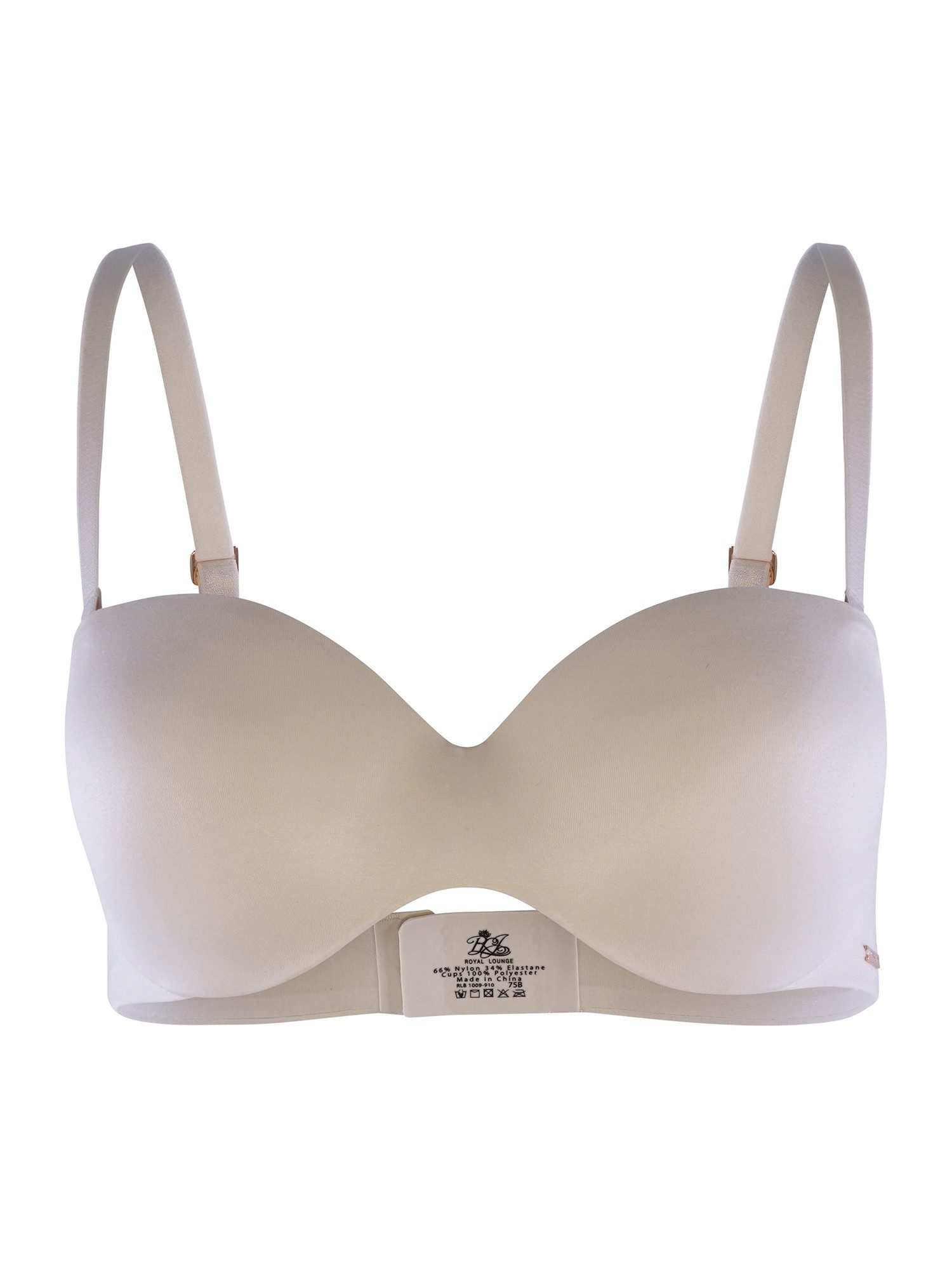 Trägerlos und trotzdem sicher – ganz ohne Silikon, ohne einschneidende Gummibänder für den sicheren Halt und kein ständiges Hoch-ziehen-müssen .Royal Magic sitzt so bequem, dass du ihn kaum spürst – und hält so zuverlässig, dass du dich den ganzen Tag frei bewegen kannst. Das nahtlose Rückenteil sowie die extra verstärkten Seiten sind innen mit hochelastischem Spandex gearbeitet und sorgen für perfekten Halt, ohne zu drücken oder Spuren zu hinterlassen. Die weich gepolsterten Bügel formen sanft – für ein schönes Dekolleté, ganz ohne Kompromisse. Optional kannst du elastische, längenverstellbare Träger einklicken – auch über Kreuz. Ob unter Brautkleid, Abendrobe oder schulterfreiem Top – dieser BH begleitet dich elegant durch jeden besonderen Moment.