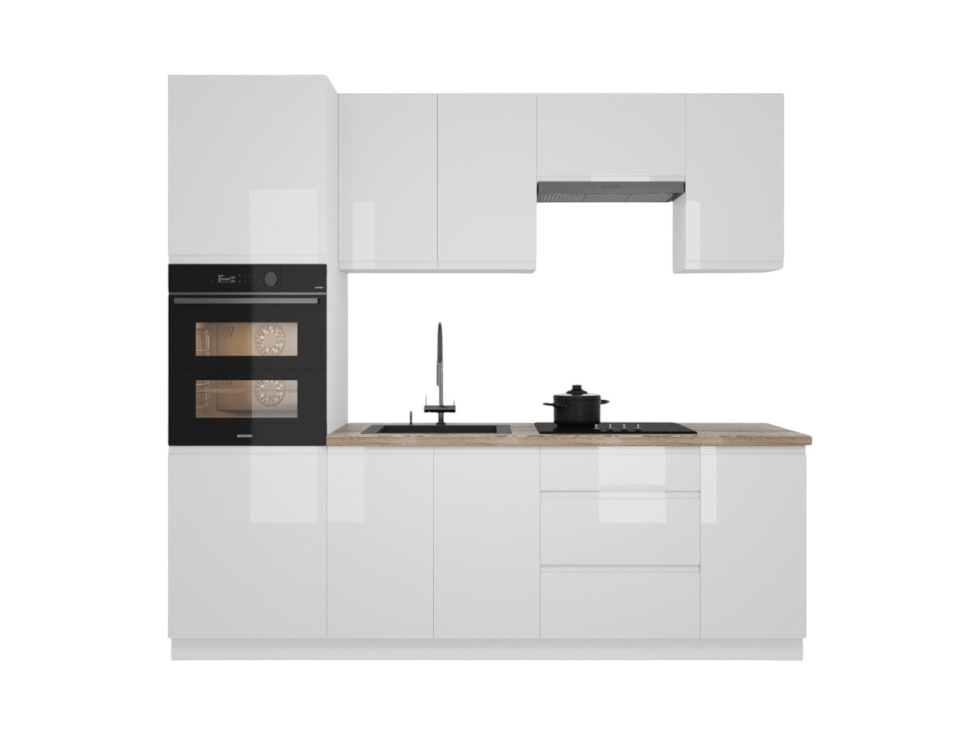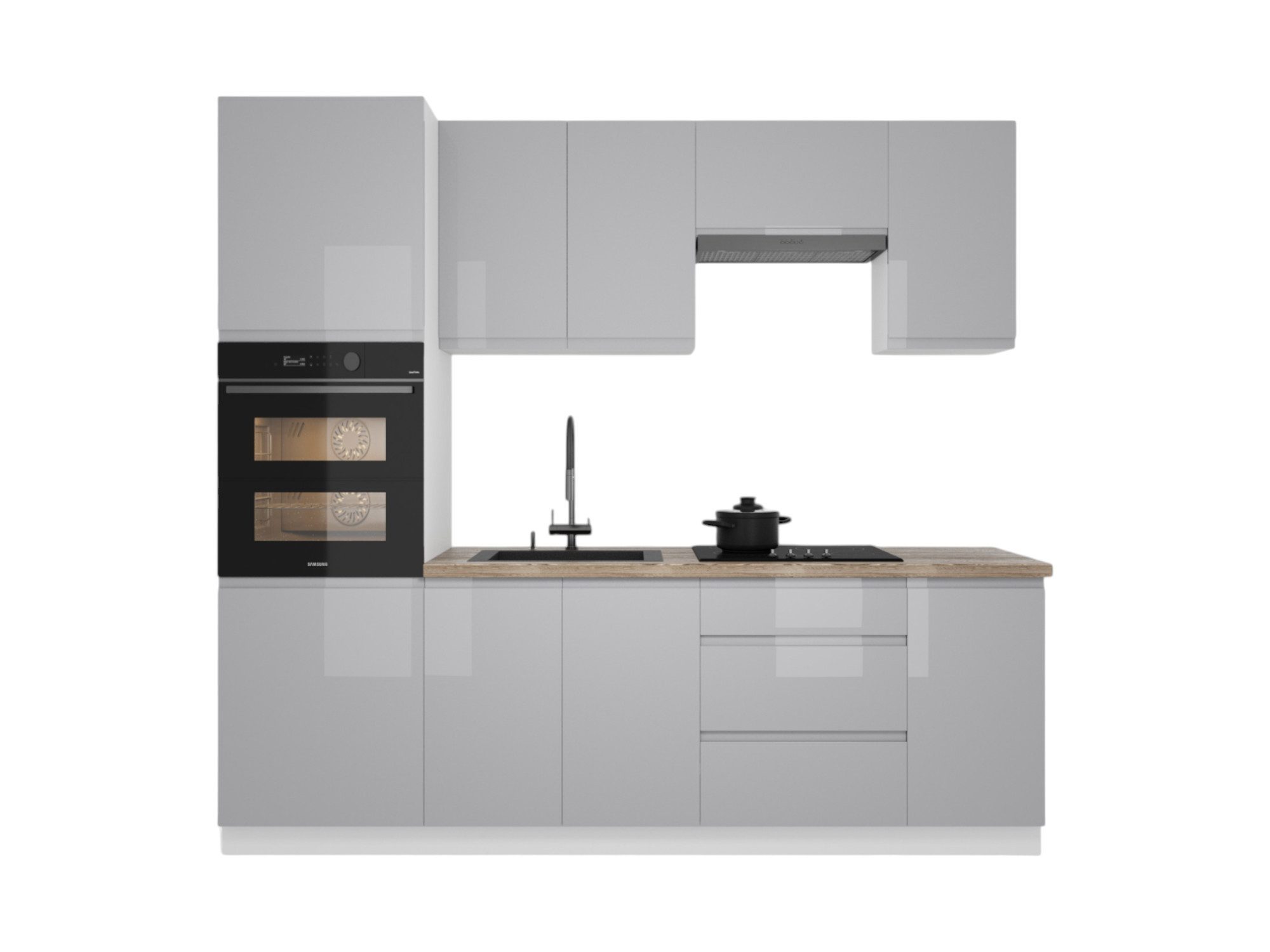Küchenmöbel-Set – Aspen 240 cm Grau / Hochglanz oder Weiß / Hochglanz