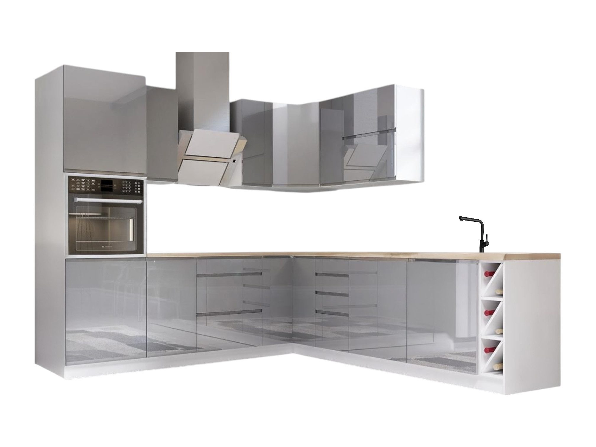 Küchenmöbel-Set Aspen 250 x 270 cm – Weiß / Hochglanz Oder Grau / Hochglanz