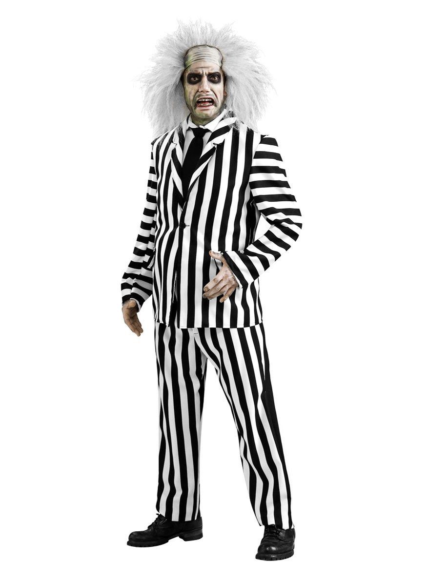 Das Kostüm des exzentrischen Bio-Exorzisten kommt in den typischen schwarz-weißen Längsstreifen daher. Es setzt sich aus einer Jacke im Sakko-Stil und einer gerade geschnittenen Hose mit bequemem Gummizug und Klettverschluss zusammen. Dazu gibt es ein einfaches Hemd, das an den Seiten gebunden wird und welches mit einem Hemdkragen und angenähter schwarzer Krawatte ausgestattet ist. “Ruhet in Frieden” - leider nicht mit Beetlejuice!