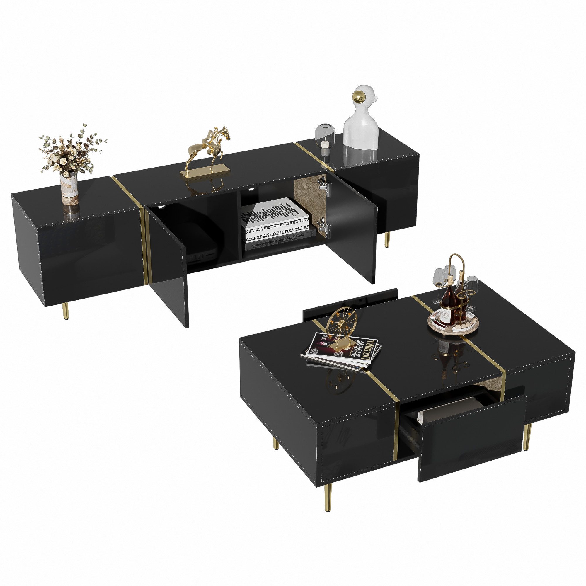 Das Set besteht aus einem schwarzen Hochglanz-TV-Schrank und einem passenden Hochglanz-Couchtisch. Dieses Set vereint Stil, Funktionalität und Eleganz und ist die perfekte Wahl für jedes moderne Wohnzimmer.
