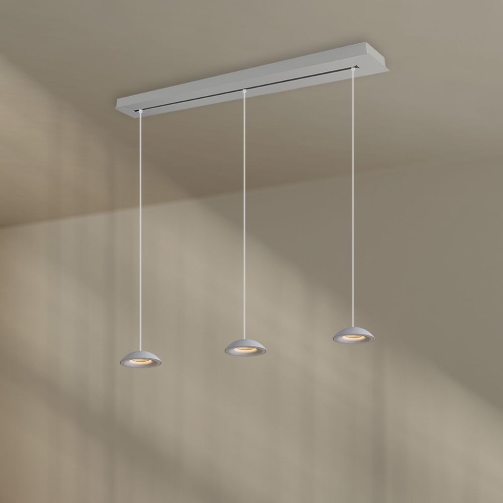 Dank dimmbarem LED-Modul (phasenabschnitt) lässt sich die Lichtintensität flexibel anpassen. Die höhenverstellbaren Pendel sorgen für maximale Gestaltungsfreiheit. Das hochwertige Aluminiumgehäuse verleiht der Leuchte eine elegante, moderne Ausstrahlung – dezent, leicht und funktional.