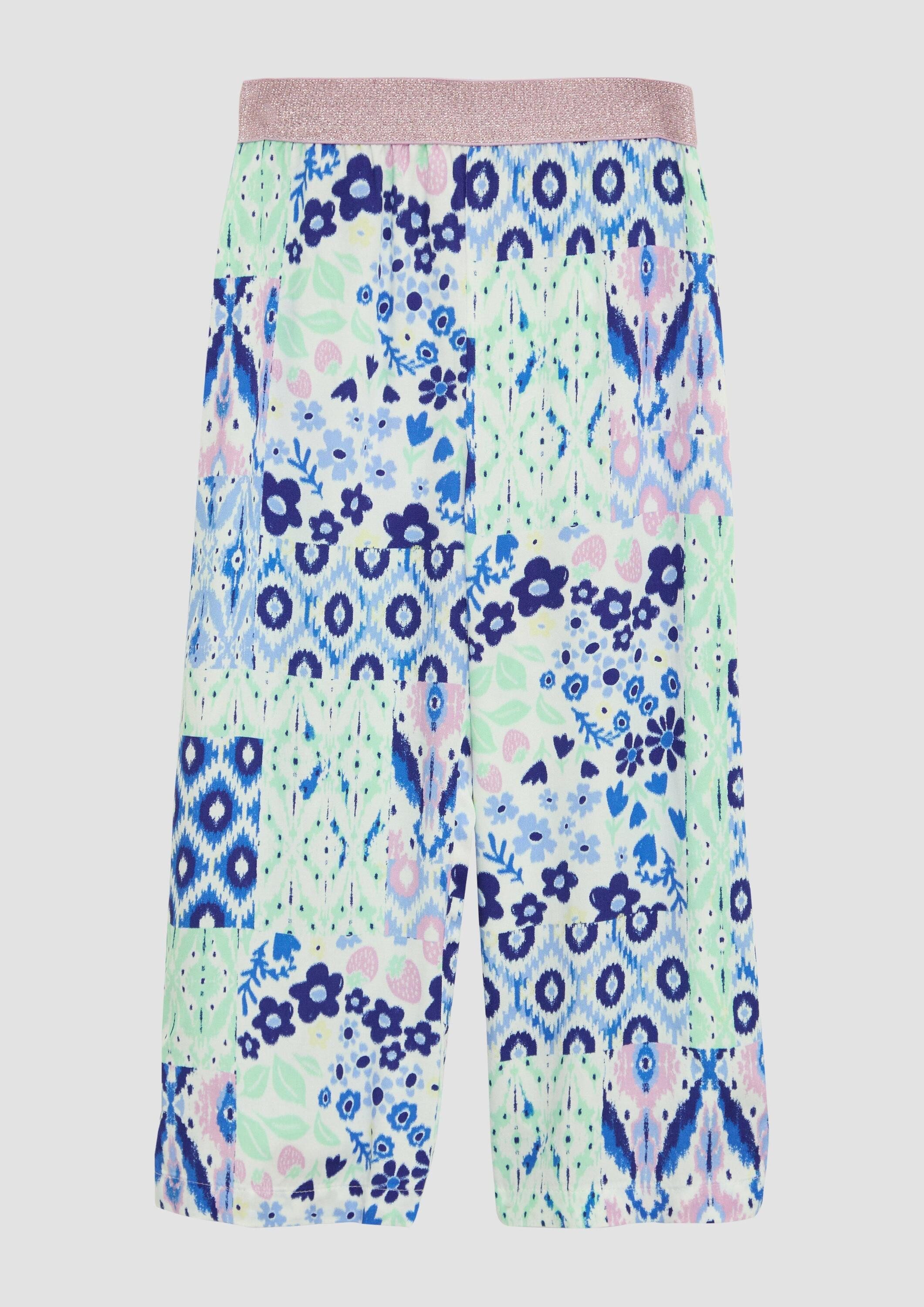 Besondere Merkmale | Gemusterte Wide Leg Hose aus satinierter Viskose mit Glitzerbund |