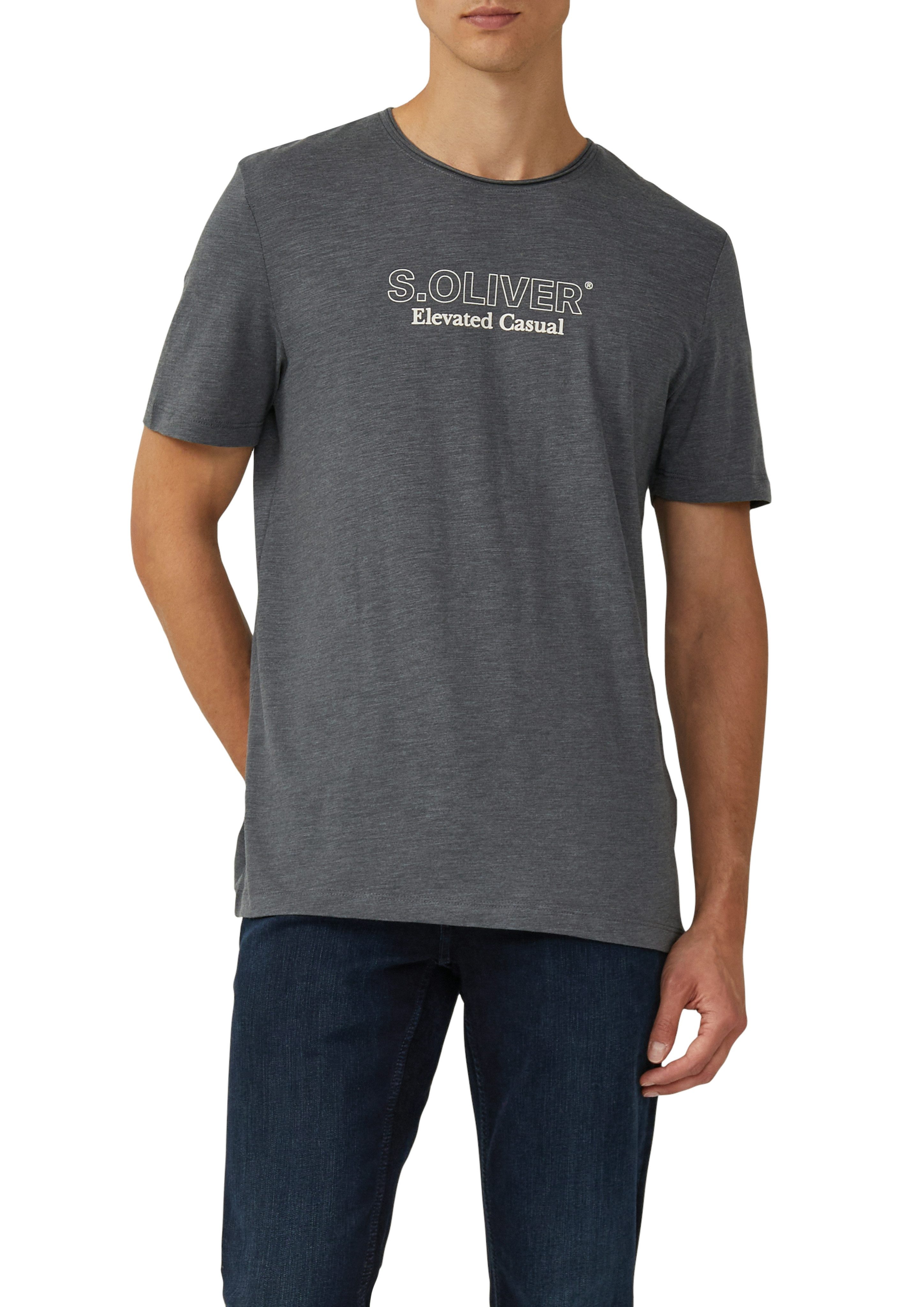 Mit dem T-Shirt von s.Oliver lassen sich schnell neue Outfits zusammenstellen. Es wirkt mit dem Markenlabel und dem Print sowohl locker als auch frisch. Dieses Shirt hat einen Rundhalsausschnitt und ist taillenbedeckend sowie basic geschnitten und umspielt deinen Oberkörper locker.