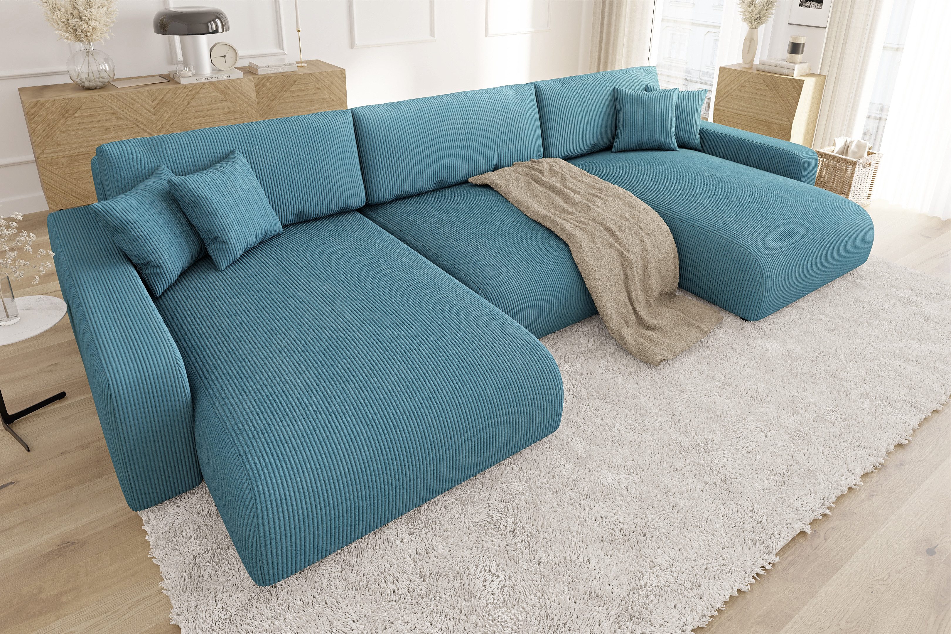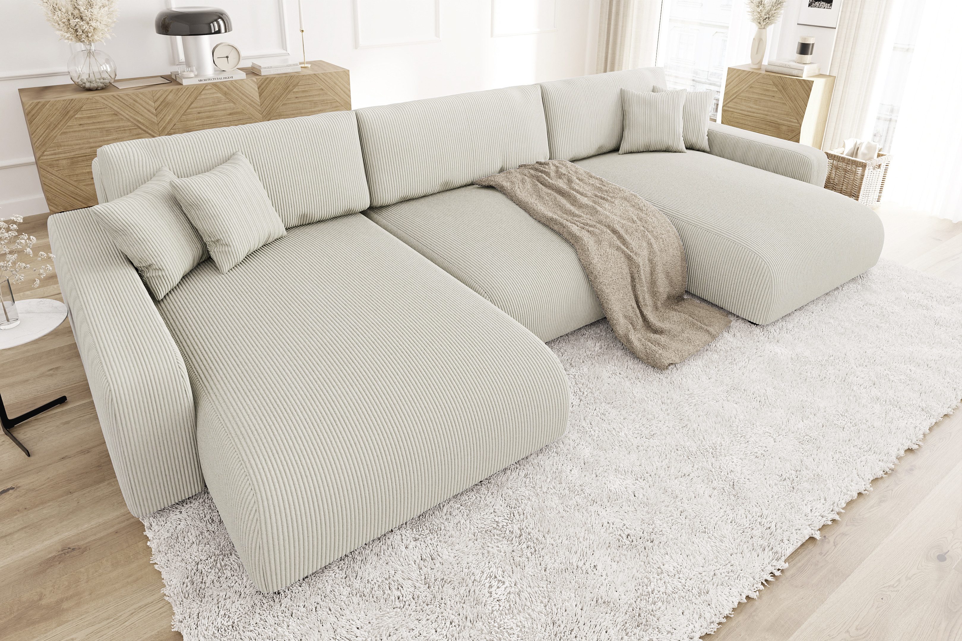 Lieferzustand | Der Kunde muss nur noch die Füße und Arme an das Ecksofateil schrauben und dann die Ottomane mit dem Zweisitzerteil zusammensetzen. |