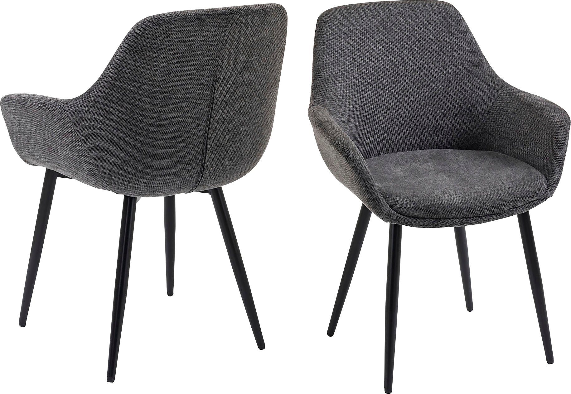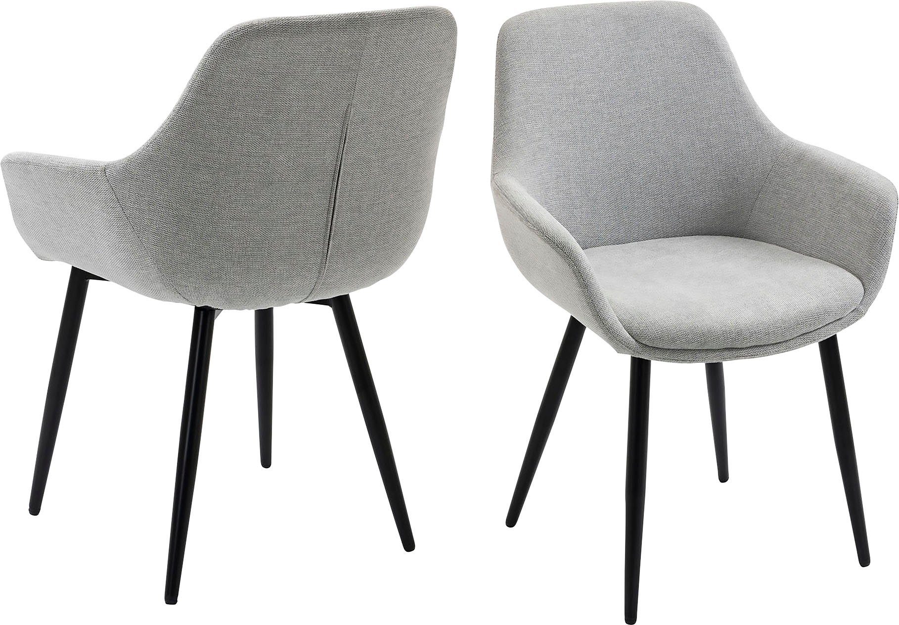 Ausführung | Armlehnstuhl 2er Set Hellgrau Strukturstoff, Beine pulverbeschichtet matt Schwarz |