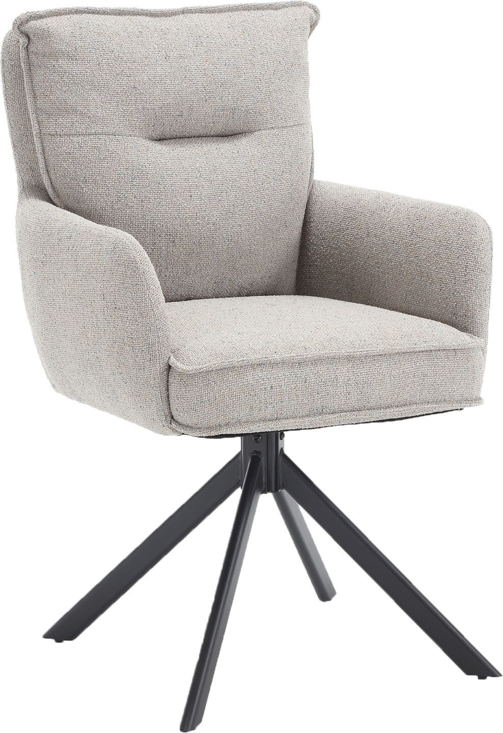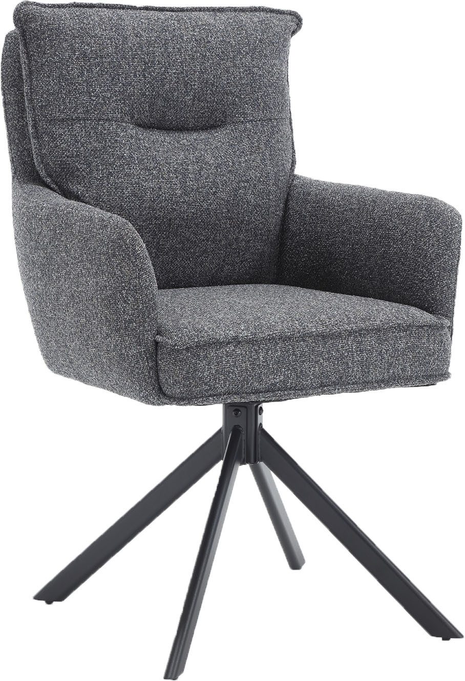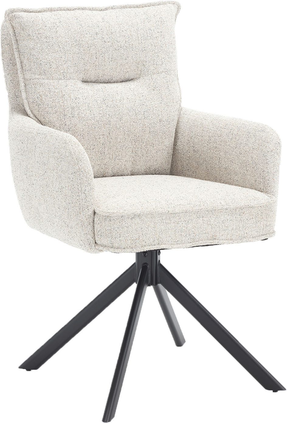 Mit diesem Esszimmerstuhl »Austin - Armlehnstuhl mit hochwertiger Taschenfederkern-Polsterung« von SalesFever kommst du der Wohlfühl-Atmosphäre wie in deinem Lieblings-Restaurant einen Schritt näher. Die Drehfunktion ermöglicht ein einfaches Hinsetzen und Aufstehen, ohne den Stuhl verrücken zu müssen. Das ist vor allem dann vorteilhaft, wenn um den Stuhl herum wenig Platz ist. Komfort steht hierbei ganz weit oben, denn genauso wie die Sitzfläche, sind auch die Rücken- und Armlehnen gepolstert. Bei etwa 110 Kilogramm liegt die maximale Belastbarkeit. Das Gestell aus Metall wirkt widerstandsfähig und bringt die nötige Stabilität mit sich.