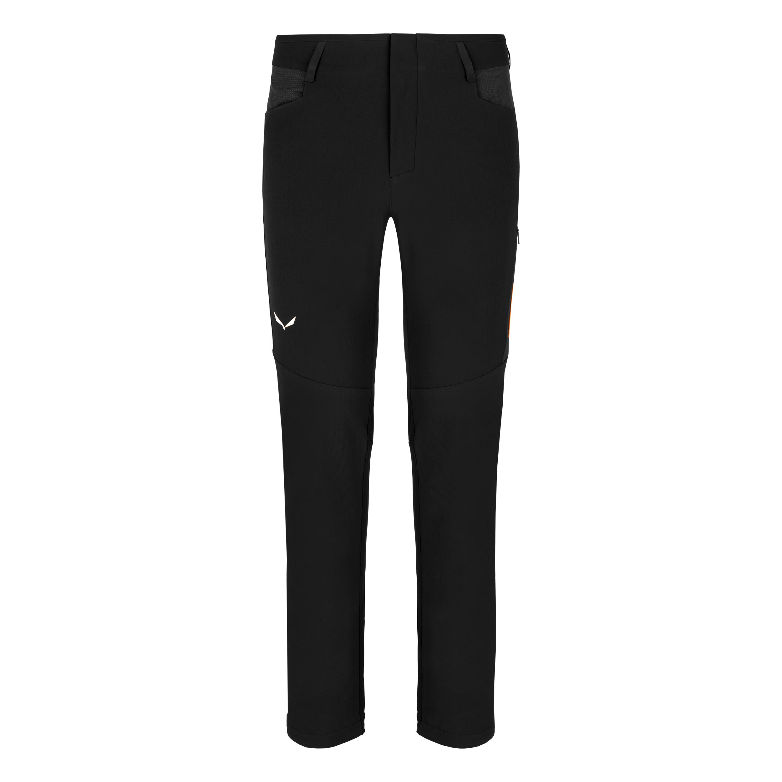 Bewegungsfreiheit Die Agner Durastretch Softshell-Hose ist mit ihrem Stretch-Zwickel, den ergonomisch geformten Knien und dem schmal zugeschnittenen Hosenbein auf Strapazierfähigkeit und uneingeschränkte Bewegungsfreiheit ausgelegt ? perfekt zum Klettern! Abriebfest Unser robustes, abriebresistentes Durastretch mit einem Gewicht von nur 196 Gramm bietet gute Atmungsaktivität und Feuchtigkeitsregulierung bei langen Wanderungen oder ausgedehnten Mehrseillängenklettertouren. Das dehnbare Softshell-Gewebe eignet sich auch für windige Tage. Es besteht aus recyceltem Nylon und ist mit einer PFC-freien DWR-Beschichtung (durable water repellent) versehen ? deshalb ist diese Hose ein SALEWA® Committed Produkt. Für Klettertouren gemacht Die athletische Passform und das schlanke Hosenbein mit Kordelzugregulierung eignen sich hervorragend für technisches Gelände und unterstützen eine gute Fußarbeit in schwierigeren Seillängen. Die Hose hat einen ergonomischen Bund, der perfekt unter dem Klettergurt sitzt, sowie gurtkompatible Taschen ? eine gesicherte hintere Reißverschlusstasche, eine flache seitliche Reißverschlusstasche und flache Fronttaschen. Eine strapazierfähige Softshell-Hose für alpine Klettertouren.