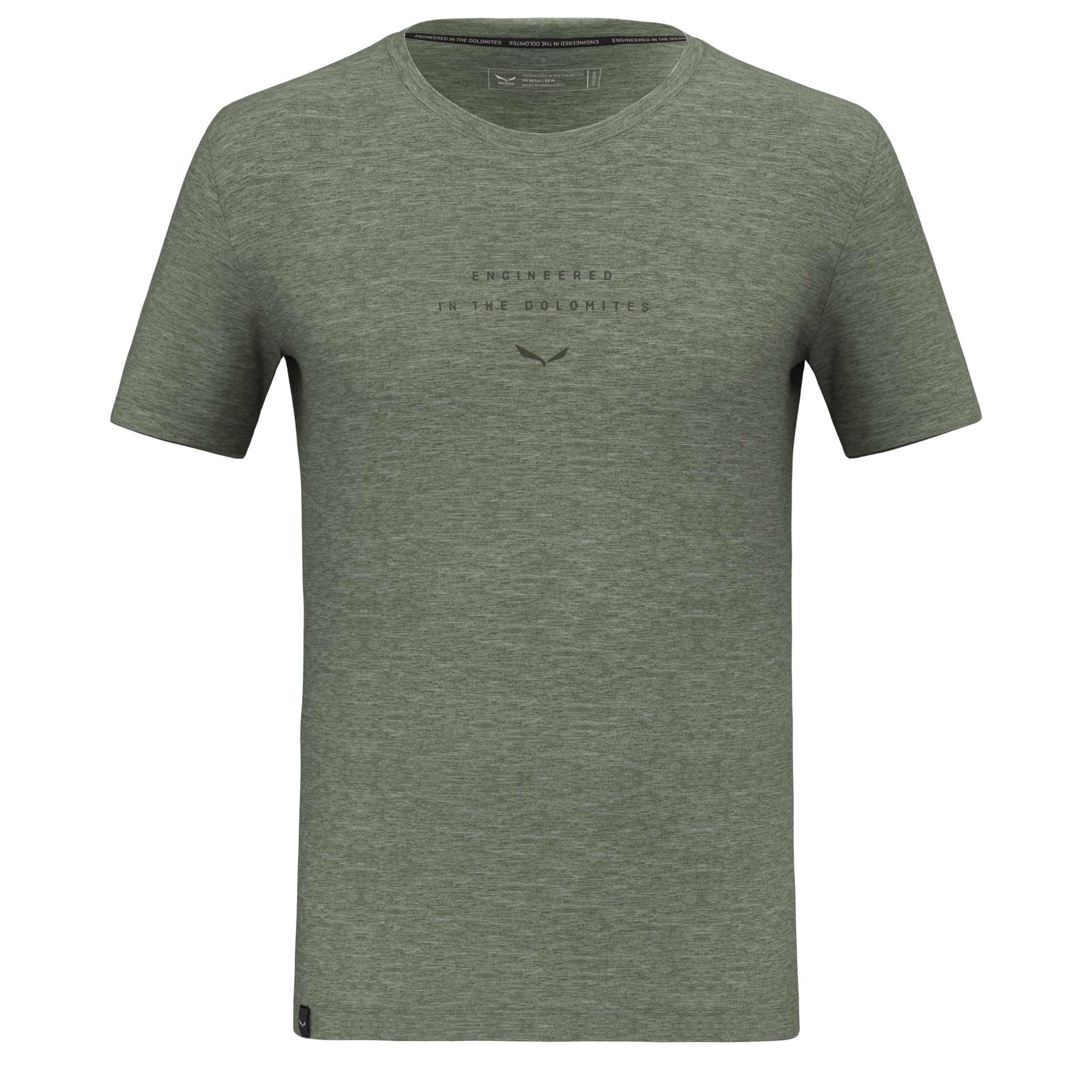 Das Eagle Alpine Merino T-Shirt mit Rundhalsausschnitt besteht aus einer weichen Materialmischung aus 70 Prozent feiner Merinowolle und 30 Prozent Polyamid. Die natürliche Merinofaser punktet vor allem mit ihren temperaturregulierenden Eigenschaften, die auch an warmen Sommertagen für ein kühles und trockenes Gefühl auf der Haut sorgen. Der Anteil an synthetischen Fasern erhöht den Tragekomfort nochmals und macht den Stoff langlebig. Das Eagle Alpine Merino T-Shirt besteht überwiegend aus natürlichen Materialien und ist damit ein Salewa Committed Produkt, das nach unseren zusätzlichen Umwelt- und Еко-товариsstandards hergestellt wird, um einen möglichst geringen, ökologischen Fußabdruck zu hinterlassen. Entwickelt in der schroffen Gebirgsgruppe der Dolomiten, ist dieses T-Shirt mit dezentem Adler-Print der ideale Begleiter am Berg wie im Tal.