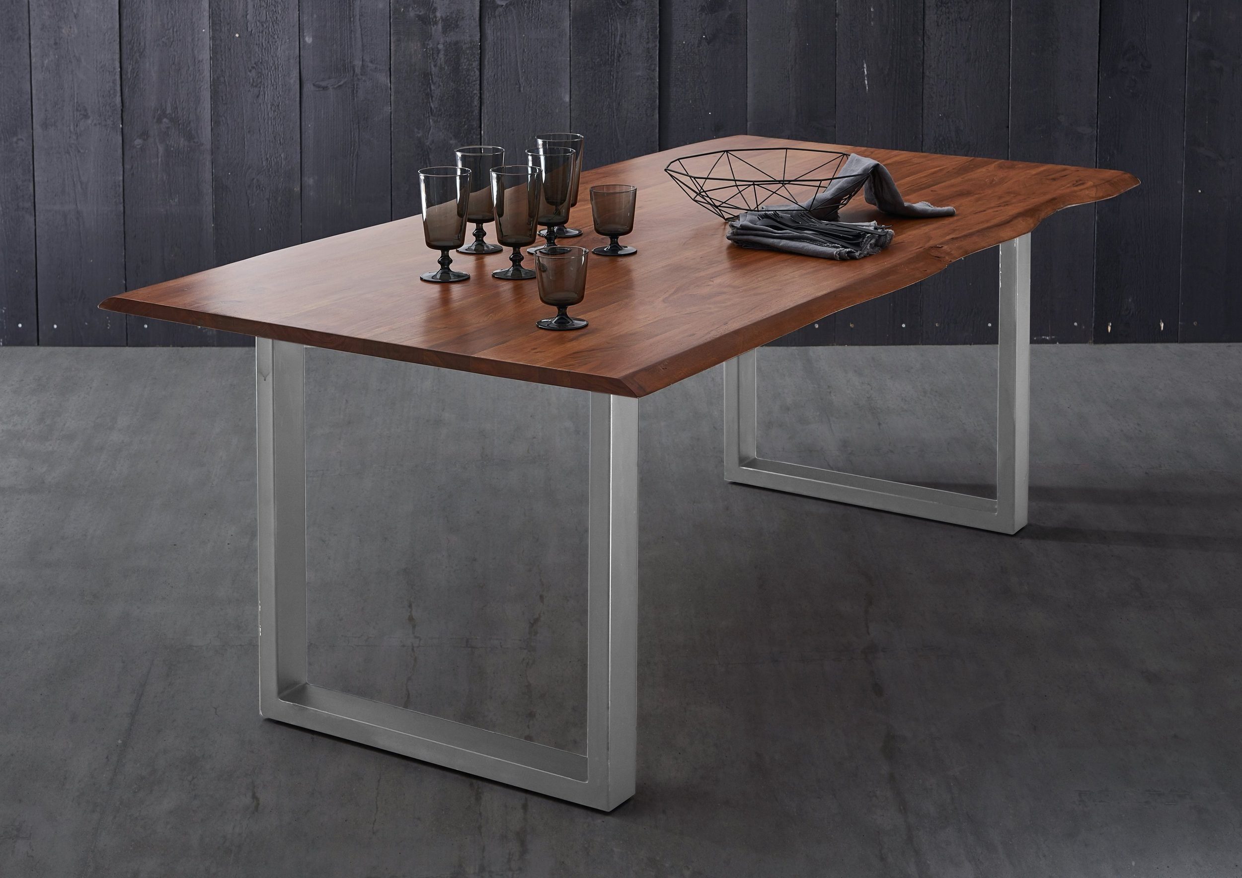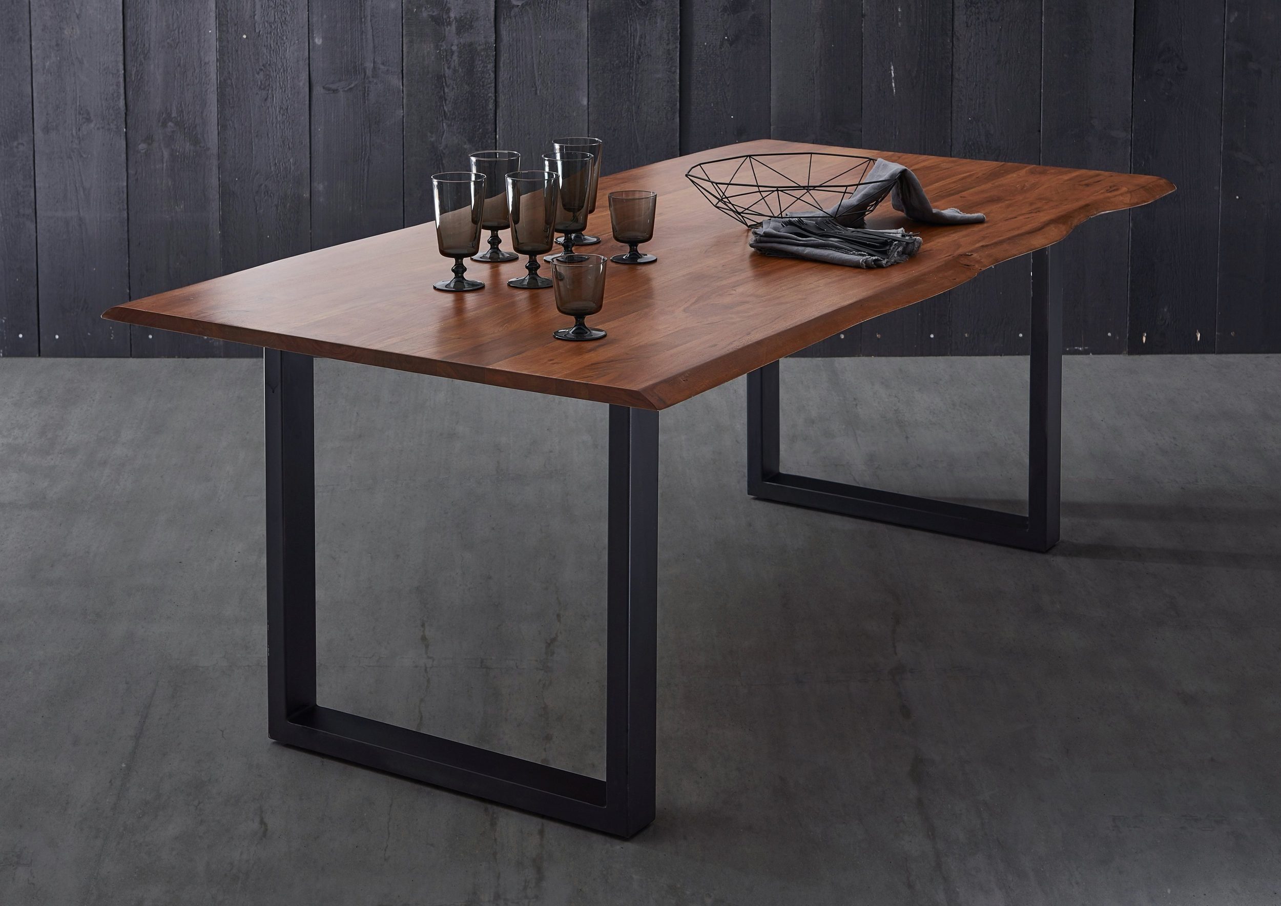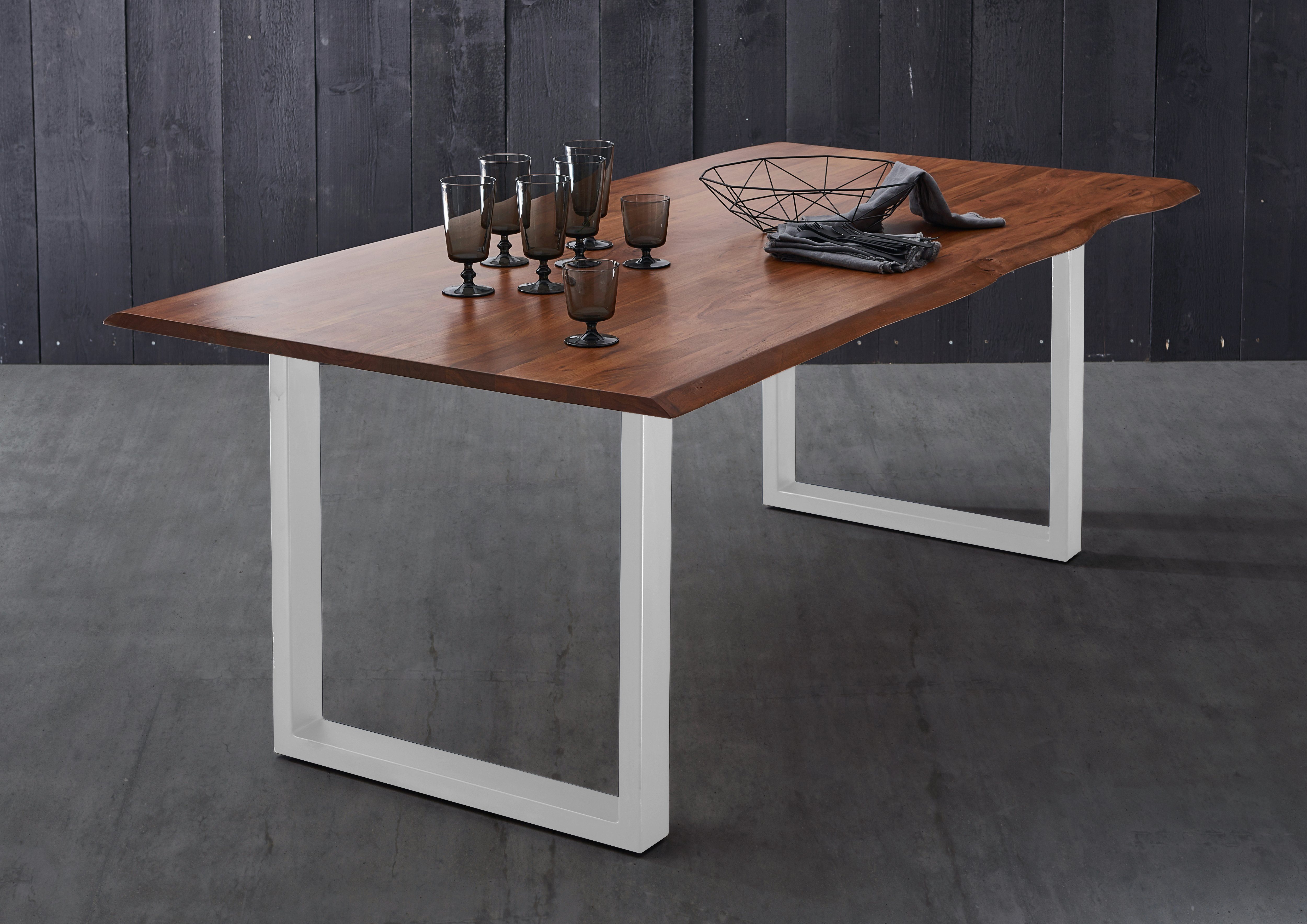 Schöne natürliche Holzmaserung, Tischbeine in schwarz, mit echter Baumkante