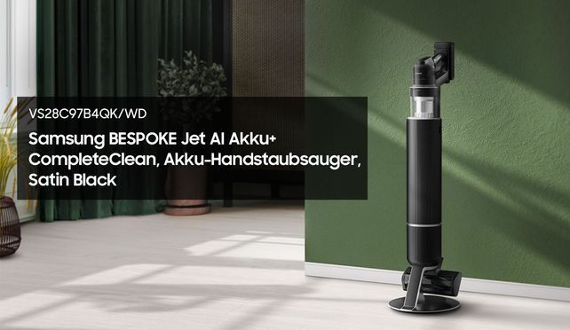 Впередe Vorteile | "Unser leistungsstärkster* kabelloser Akku-Handstaubsauger - Effektive und quasi mühelose Reinigung mit hoher Saugleistung und langer Akkulaufzeit Reinige deine Böden effektiv und quasi mühelos mit unserm leistungsstärksten* BESPOKE Jet AI. Der Samsung HexaJet-Motor erzeugt eine Saugleistung von bis zu 280W** für eine intensive Reinigung von vielen Arten von Böden. Die Multi-Cyclone-Luftfilterung kann feine Staubpartikel effizient abfangen. Die Akkulaufzeit kann bis zu 100 Minuten*** betragen. * Leistungsstärkster Akku-Handstaubsauger im Vergleich zur angegebenen Saugleistung innerhalb des Samsung Portfolios ** Basierend auf Tests des Korea Testing Laboratory in Übereinstimmung mit der Norm IEC62885-4: 2020 direkt an der Saugöffnung (ohne motorisierte Bürste) mit leerem Staubbehälter gemessen, im Jet-Modus und voll geladenem Akku (Akku mit Kapazität bis zu 3970mA). Die tatsächlichen Ergebnisse können je nach Nutzungsverhalten und Umgebungsbedingungen variieren. *** Die Saugdauer wird angegeben unter Verwendung des voll geladenen Akkus (Akku mit Kapazität bis zu 3970mA) mit niedrigster Saugstufe unter Verwendung eines Zubehörteils (keine motorisierte Bürste). Die tatsächlichen Ergebnisse können je nach Nutzungsverhalten und Umgebungsbedingungen variieren. **** Die Fähigkeit, verschiedene Bodentypen zu erkennen, kann durch die Umgebungsbedingungen beeinflusst werden." All-in-One Clean Station - Einfache und hygienische Staubentleerung inklusive AufladenSo kannst du auf einfache Art den Staubbehälter leeren und gleichzeitig deinen Handstaubsauger aufladen. Die All-in-One Clean Station lädt den Akku auf und nutzt die Air Pulse-Technologie, um den Staubbehälter effizient* zu leeren. Dabei werden durch ein mehrstufiges Filtersystem bis zu 99,999 %** des Feinstaubs aufgefangen. Ein zusätzlicher Luftstrom, der sich beim Entleeren automatisch kraftvoll mitdreht, entfernt bis zu 99% der Haare vom Netzfilter***. Für zusätzlichen Komfort kann sich der Deckel des Staubbehälters automatisch nach jeder Leerung selbst schließen.* Basierend auf internen Tests mit verschiedenen Arten von Staub. Die tatsächlichen Ergebnisse können je nach Nutzungsverhalten und Umgebungsbedingungen variieren.** Basierend auf internen Tests, in Übereinstimmung mit der Norm IEC 62885-2, ABSCHNITT5.11. Die tatsächlichen Ergebnisse können je nach Nutzungsverhalten und Umgebungsbedingungen variieren.*** Basierend auf internen Tests. Die Haarentfernungsrate wird gemessen, indem das Gewicht des Staubbehälters vor und nach dem Aufsaugen der Haare und dem anschließenden Entleeren mit der All-in-One Clean Station verglichen wird. Die Ergebnisse können je nach den tatsächlichen Einsatzbedingungen variieren. Jet Cyclone Technologie - Starke Saugleistung und saubere LuftFreue dich auf gefilterte Luft und eine starke Saugleistung mit der effizienten Multi-Cyclone Technologie des Jet Cyclone- Systems. Jeder der 10 Zyklone ist jeweils einem 3-Wege-Mehrfachlufteinlaßsystem ausgestattet. 28 Lufteinlässe, die für einen optimierten Luftstrom sorgen, trennen diesen effektiv von Staub und Schmutz. Außerdem fängt es feine Staubpartikel, die in den Staubsauger eingesaugt werden, hygienisch auf. Passt automatisch die Akku- und Reinigungsleistung verschiedenen Reinigungsumgebungen an* - AI Cleaning Mode - KI Reinigungsmodus mit Active Dual BrushDer AI Cleaning Mode** nutzt Samsungs AI Optimum Tech und teilt auf intelligente Weise komplexe Reinigungsumgebungen***, einschließlich der Bodenart, in unterschiedliche Klassen ein, indem er die Belastung auf den Bürsten und den Unterdruck während des Saugens erkennt. Der AI Cleaning Mode** kann automatisch Einstellungen wie die Saugleistung und die Rotationsgeschwindigkeit der Bürsten**** anpassen, um die gleiche Reinigungsleistung wie im Max-Reinigungsmodus zu erzielen, während der Akkuverbrauch um bis 14% gesenkt und die Manövrierfähigkeit um bis zu 6%* erhöht werden kann. Wechselbare und langlebige Akkus - Reinige dein Zuhause bis zu 100 Minuten** mit einem großen Akku – oder mit einem kleineren Ersatzakku****Wähle flexibel zwischen 2 Akkutypen, die zu deiner Saugroutine am besten passen kann: entweder den Akku mit hoher Saugleistung von bis zu 280 W* für den großen Hausputz oder dem kleineren, leichteren** Akku von bis zu 250 W*** für die schnelle Reinigung zwischendurch.* Basierend auf Tests des Korea Testing Laboratory in Übereinstimmung mit der Norm IEC62885-4: 2020 direkt an der Saugöffnung (ohne motorisierte Bürste) mit leerem Staubbehälter gemessen, im Jet-Modus und voll geladenem Akku (Akku mit Kapazität bis zu 3970mA). Die tatsächlichen Ergebnisse können je nach Nutzungsverhalten und Umgebungsbedingungen variieren.** Gewicht: 1,68 kg mit Handstück für den Akku mit 250 W im Vergleich zu 1,89 kg mit Handstück für den Akku mit 280 W*** Basierend auf internen Tests in Übereinstimmung mit der Norm IEC62885-2 Abschnitt 5.8, unter Verwendung eines Zubehörteils (keine motorisierte Bürste), im Jet-Modus. Die tatsächlichen Ergebnisse können je nach Nutzungsverhalten und Umgebungsbedingungen variieren. |
