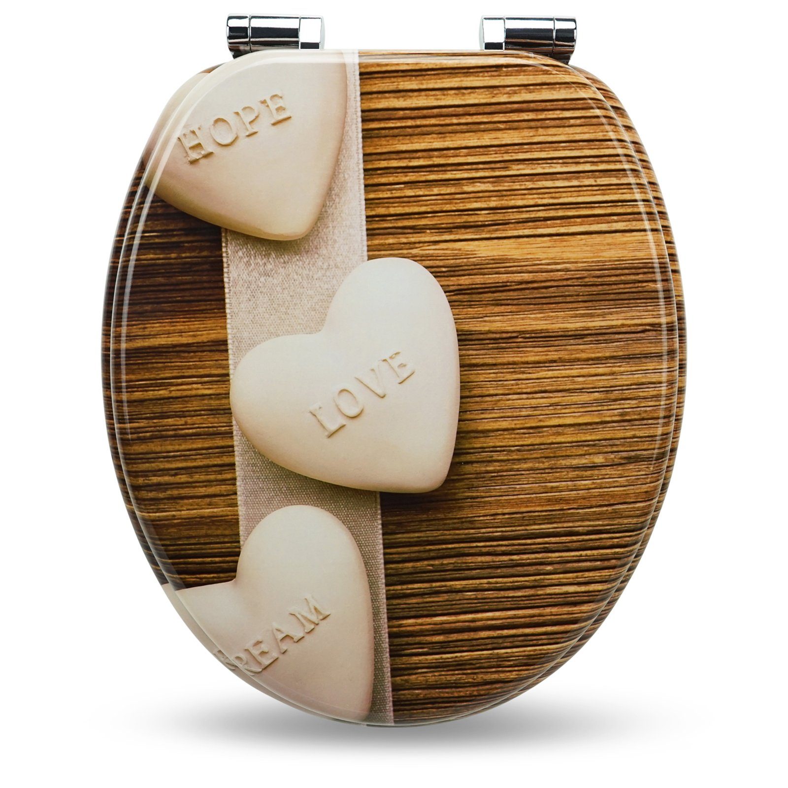 Sanfino WC-Sitz "Hearts" Premium Toilettendeckel mit Absenkautomatik aus Holz, mit schönem Herz-Motiv, hohem Sitzkomfort, einfache Montage