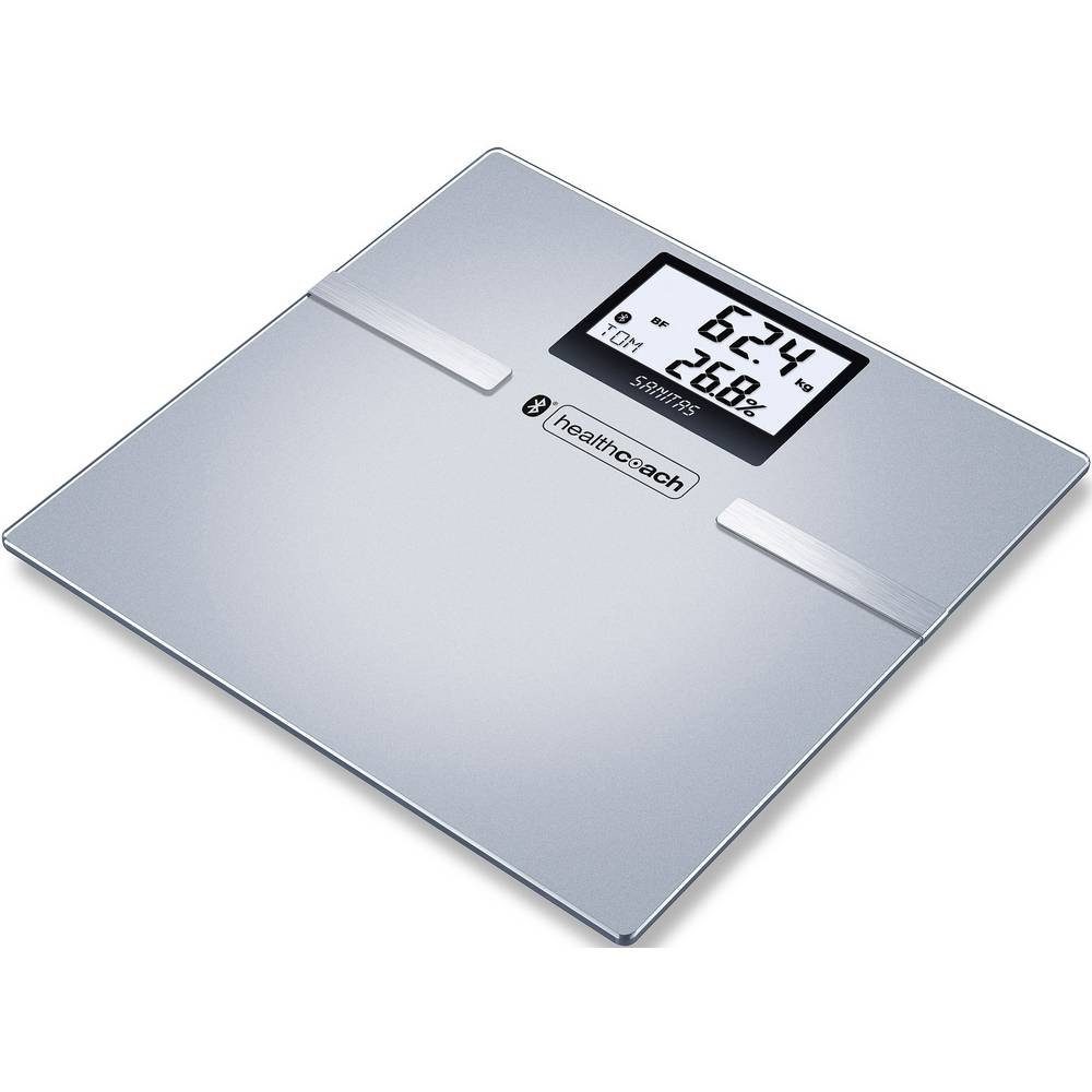 Ausstattung | Anzahl Speicherplätze: 8 · Anzeige (digital/mechanisch/analog): digital · Datenanalyse: Android-App, iOS-App · Datenübertragung: Bluetooth · Genauigkeit (Details): 100 g · Gewicht: 1.65 kg · Herstellerfarbe: Grau · Körper-Analyse-Funktionen: Gewicht, Körperfett, Körperwasser, Muskelmasse · Material (Details): Kunststoff · Material (Trittfläche): Sicherheitsglas · Maßeinheit: kg, lb, st · Produktabmessung, Breite: 300 mm · Produktabmessung, Höhe: 23 mm · Produktabmessung, Довжина: 300 mm · Stromversorgung: Micro-Batterie (3x) inkl. · Wägebereich (max.): 180 kg |