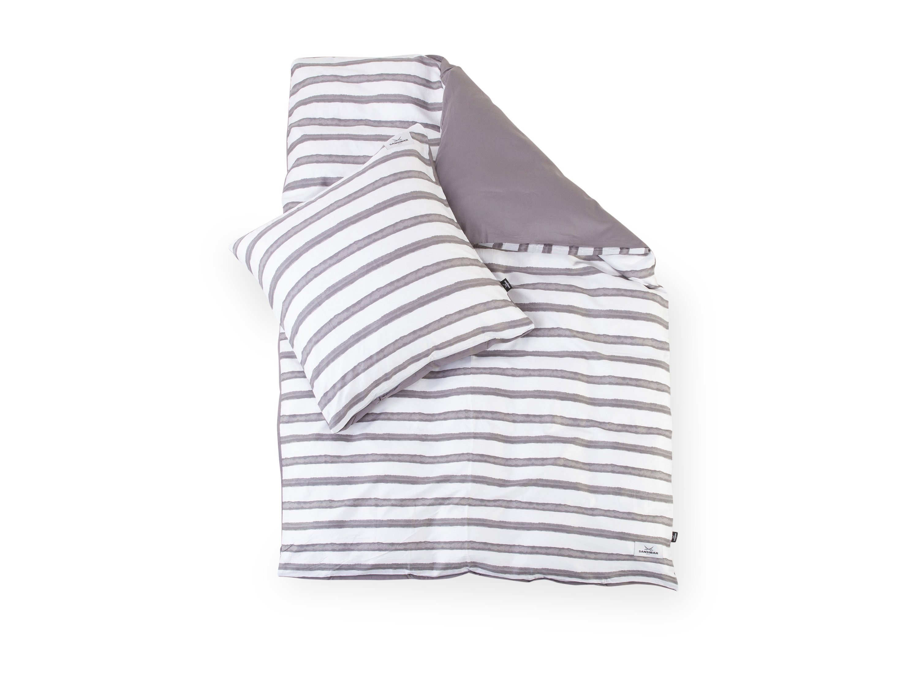 · Baumwoll-Satin frostgrau · Streifen-Design · mit Reißverschluss · Kopfkissen ca.80x80 cm · Decke ca. 135x200 cm