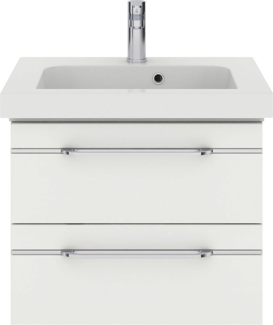 Funktionen | 1 Mineralmarmor-Waschtisch weiß 1 Waschtischunterschrank mit 2 Auszügen |