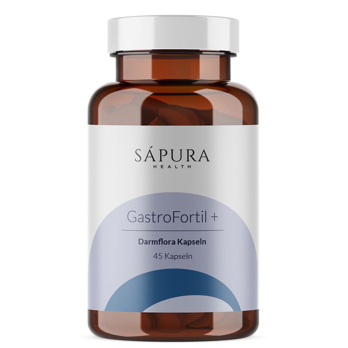 Der Darm spielt eine zentrale Rolle für unser Wohlbefinden, und eine ausgewogene Darmflora ist entscheidend für die Verdauung und den Nährstoffhaushalt. GastroFortil+ Probiotika bietet eine einzigartige Kombination aus 14 sorgfältig ausgewählten Keimstämmen und den präbiotischen Ballaststoffen Inulin und Oligofructose. Jede Kapsel von GastroFortil+ enthält eine effektive Mischung von Bakterienstämmen wie Lactobacillus Bulgaricus, Lactobacillus Rhamnosus und Bifidobacterium Infantis. Die enthaltenen präbiotischen Ballaststoffe, Inulin und Oligofructose, dienen als Nahrung für die positiven Darmbakterien und können zu einem niedrigen pH-Wert im Darm beitragen, der schädliche Bakterien hemmt. Studien zeigen, dass diese Ballaststoffe das Wachstum von Bifidobakterien und Lactobazillen fördern können. GastroFortil+ wird in Deutschland unter strengsten Qualitätsstandards hergestellt. Es ist vegan, fructosefrei, glutenfrei und kommt ohne künstliche Zusatzstoffe oder Füllstoffe aus. Die Kapseln sind leicht einzunehmen und besonders gut verträglich. Egal ob zur Wiederherstellung der Darmflora nach einer Antibiotikabehandlung oder zur dauerhaften Unterstützung einer gesunden Verdauung – GastroFortil bietet Ihnen eine zuverlässige und hochwertige Lösung. Gönnen Sie Ihrem Darm das Beste und setzen Sie auf die natürliche Kraft von Probiotika und Präbiotika! Packungsinhalt: 45 transparente, magensaftresistente Cellulosekapseln mit je 500 mg / entspricht 22,5 g