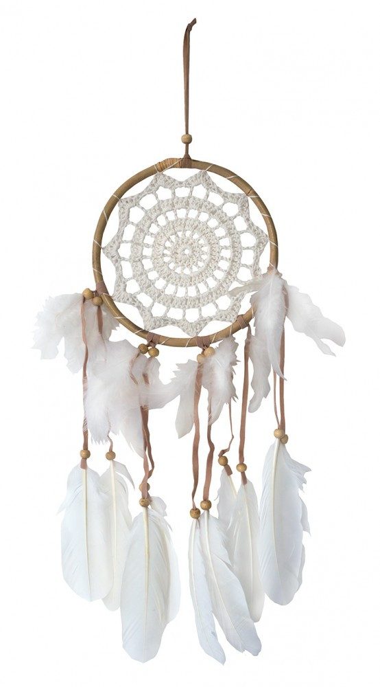 Saraswati Traumfänger Traumfänger Rattan mit Netz gehäkelt, weiss 16cm, Gesamtlänge 17x50cm