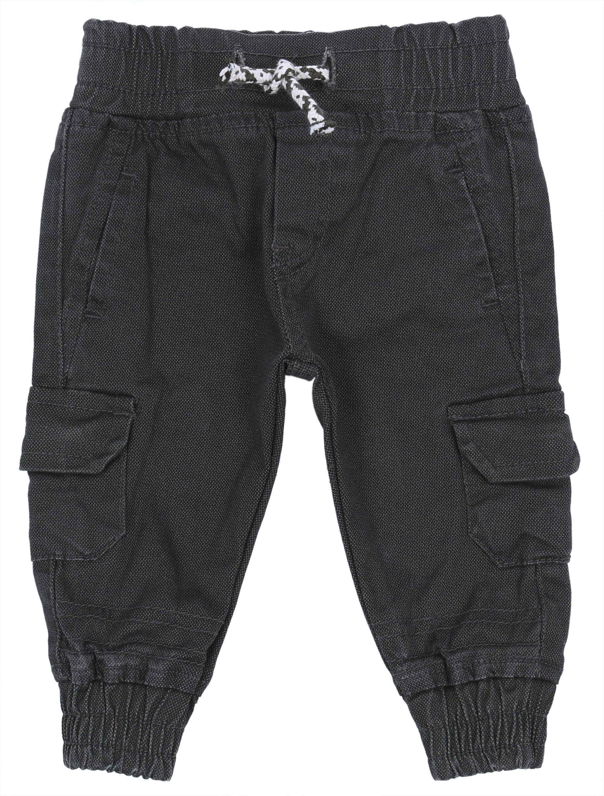 Mit einem Gummiband in der Taille und einer Deko-Schnürung.