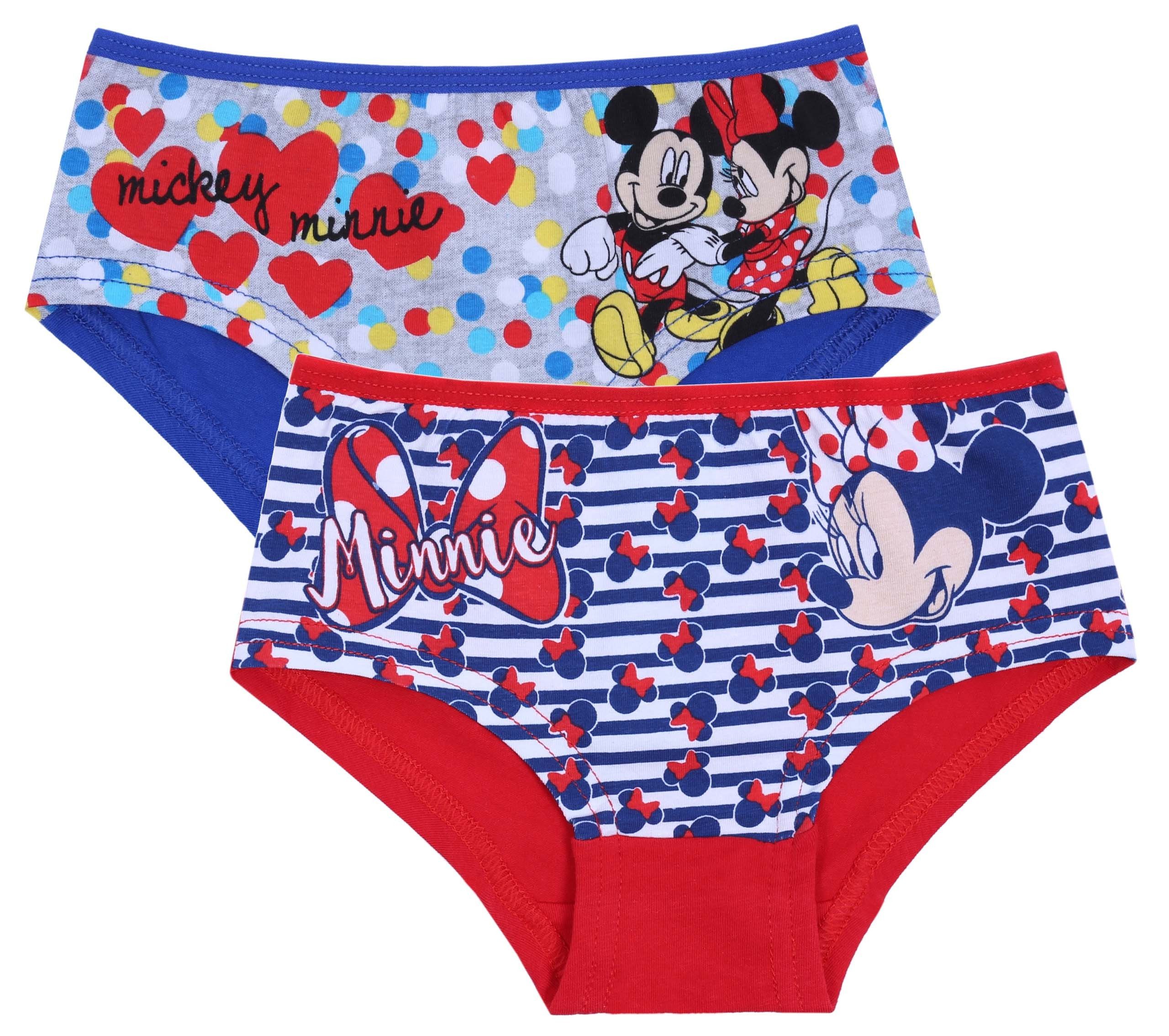 Ein Satz von zwei Paar Höschen Typ Shorts für Mädchen, in roter und dunkleblauer Farbe.