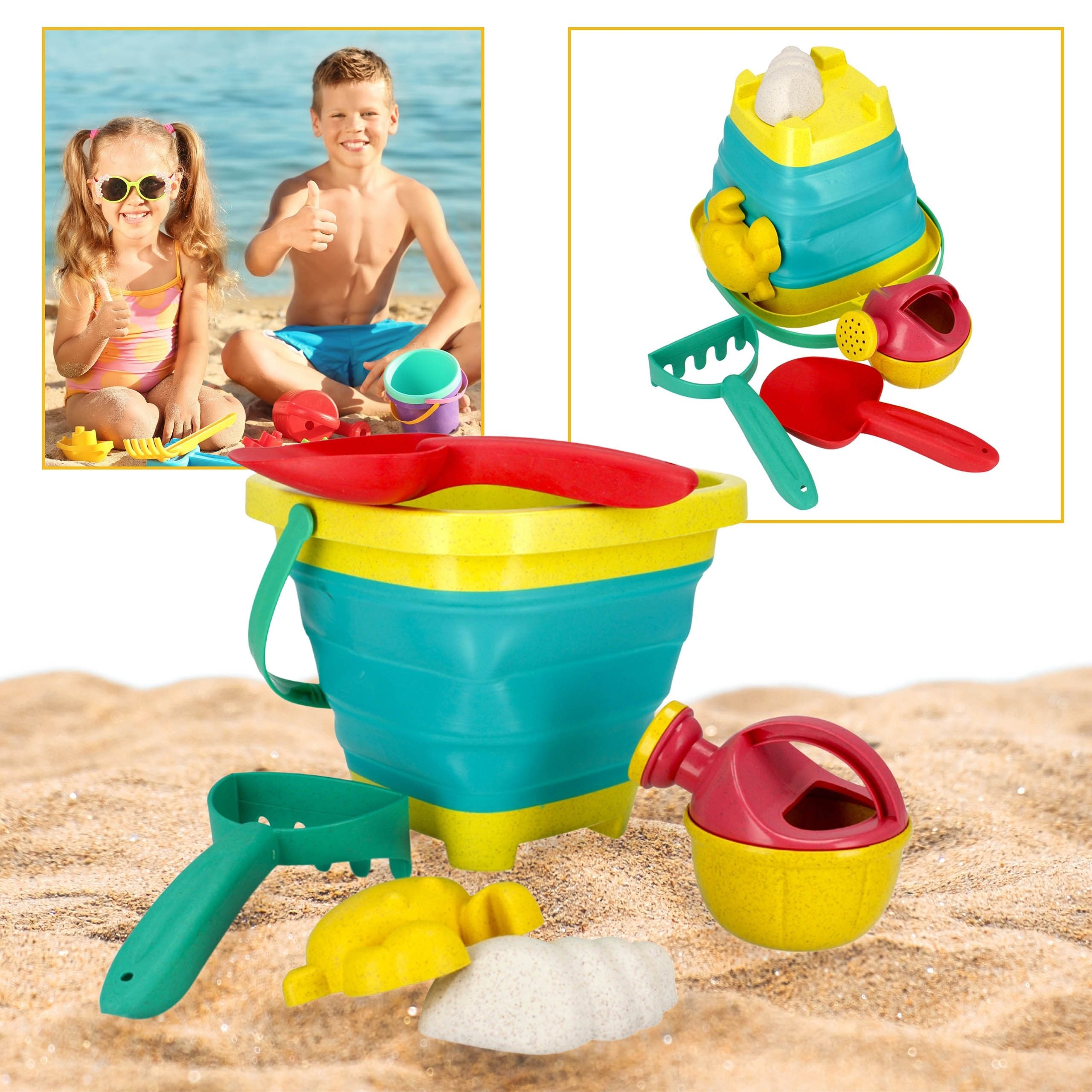 Das Sand Set Falteimer mit Zubehör ist das ideale Spielzeug für Kinder, die gerne am Strand oder im Sandkasten spielen.