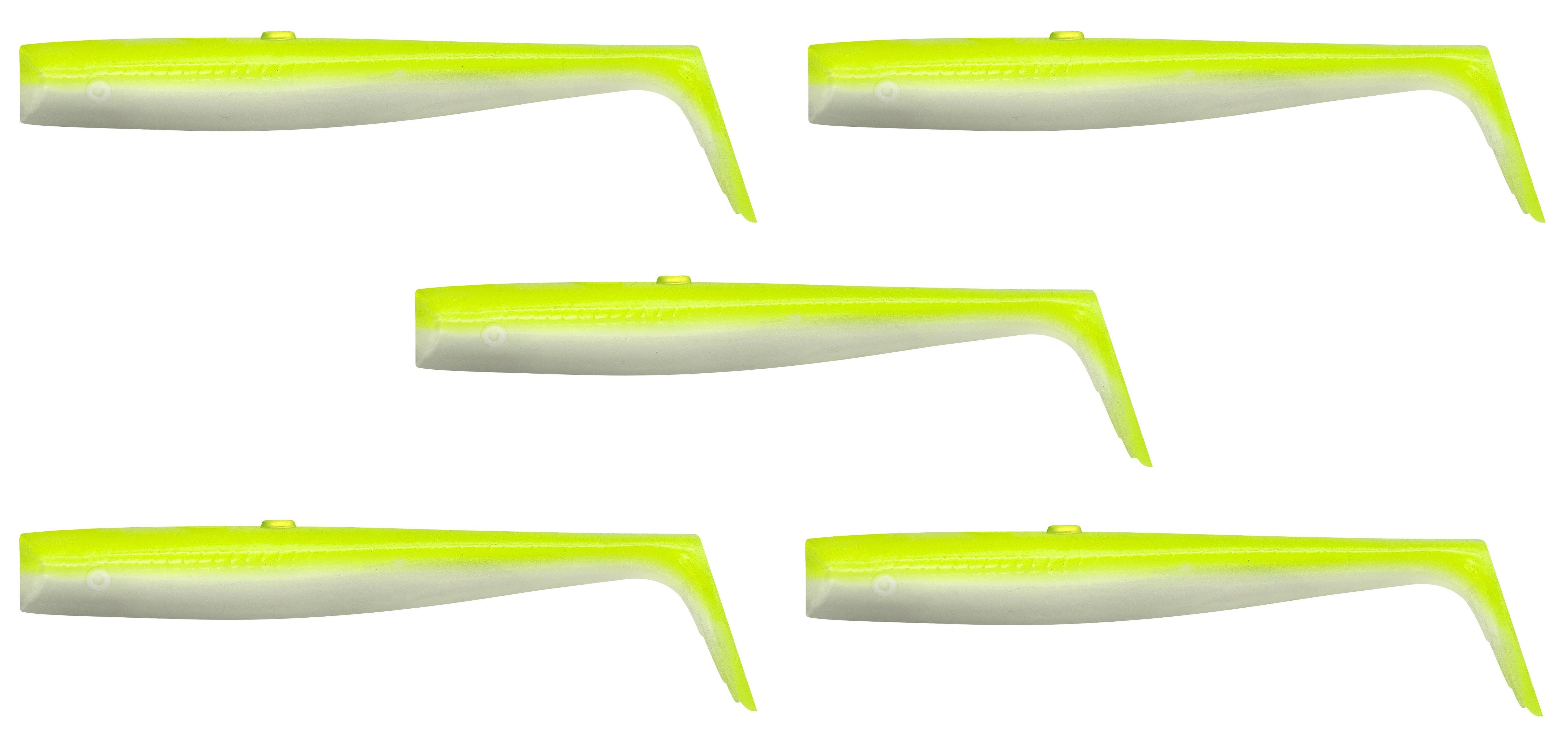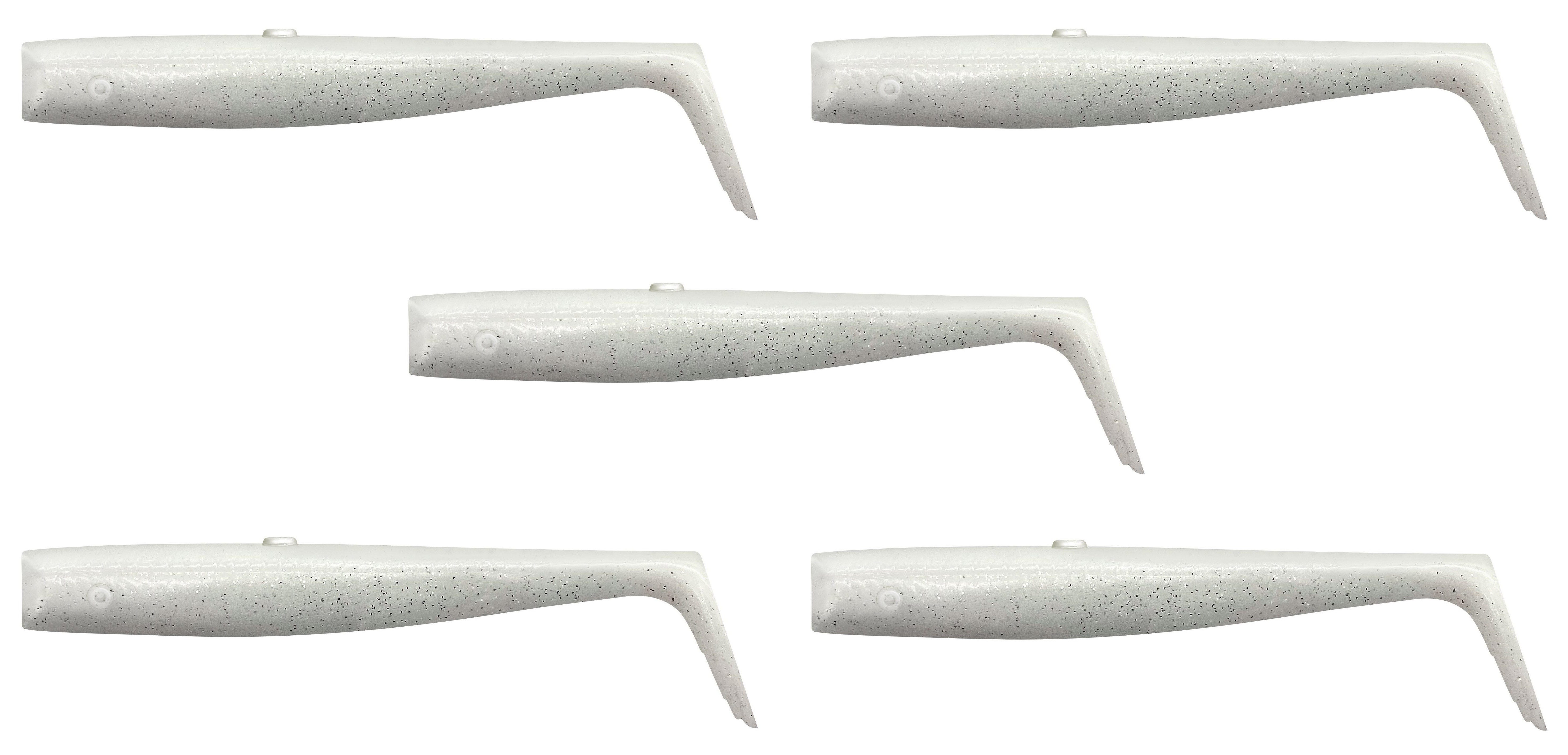 Halten Sie sich mit Schwänzen für unsere extrem realistische Sandaal-Imitation gut versorgt, die sowohl beim Absinken als auch beim Einholen eine lebhafte Bewegung bietet. Es sind vier Größen erhältlich – 9,5 cm, 11 cm, 12,5 cm und 14 cm – sowie sechs verschiedene Farboptionen, um Ihnen das Fangen unter allen Bedingungen zu ermöglichen. Der Pro Peg Körperhalter ermöglicht es, den Körper mit einem Zahnstocher am Kopf zu befestigen, sodass eine sehr einfache und sichere Halterung entsteht. Der weiche PVC-Körper kommt bereits vormontiert mit einem internen Glasrassel, der einen anziehenden Klang erzeugt, um nahegelegene jagende Fische anzulocken.