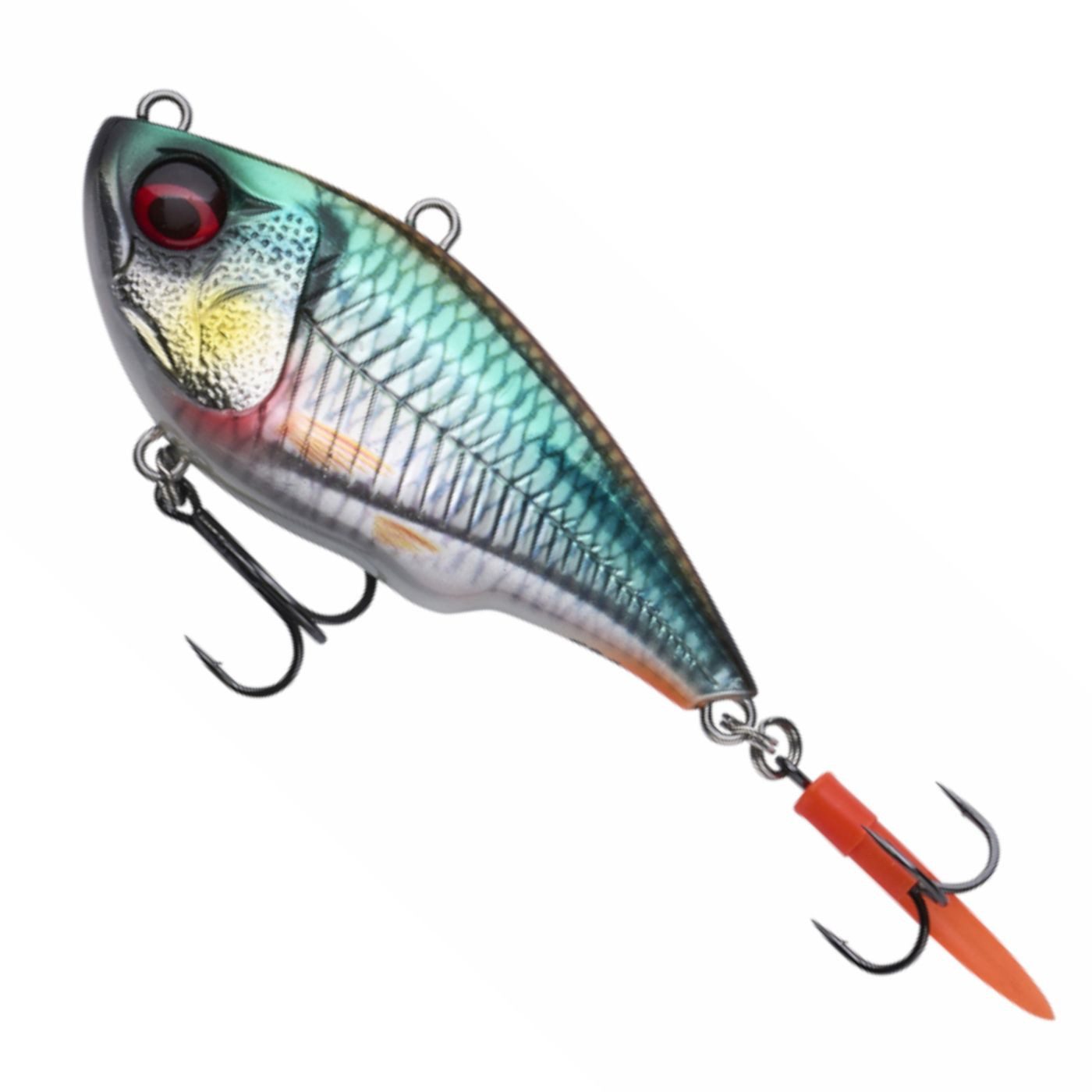 Savage Gear Fat Vibes XL 10cm 58g Sinking - Tolle Details, eine tolle Schwimmbewegung beim Sinken, ein lebendiges Bewegungssystem und eine tolle seitliche Blink- und Vibrationsbewegung beim Einholen – dieser lippenlose Wobbler von Savage Gear hat alles. Und in der XL-Розмір hat er die Option eines Nasenbefestigungspunkts, der ihm auch höher in der Wassersäule eine große, gleitende S-Kurven-Schwimmbewegung verleihen kann, was ihn zu einem perfekten Suchköder macht, um große Wasserflächen abzudecken. Eine eingebaute röhrenförmige Rasselkammer gibt einen lauten und charakteristischen Ton ab. Seine Weitwurffähigkeit macht ihn nicht nur ideal für die Suche im offenen Wasser, sondern auch für das vertikale Angeln entlang von Strukturen, Felshaufen und Kanten.