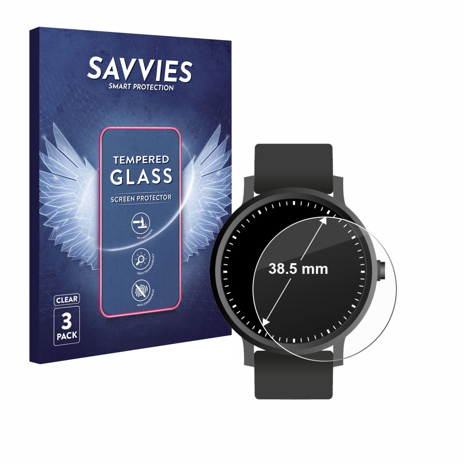 Lieferumfang | 3x Savvies HD33 Clear Schutzglas kompatibel mit Armbanduhren (Kreisrund, ø: 38.5 mm) (3x Display), Alkohol-Reinigungstuch, Microfasertuch, Klebestreifen zur Staubentfernung, Anbringungsanleitung. |