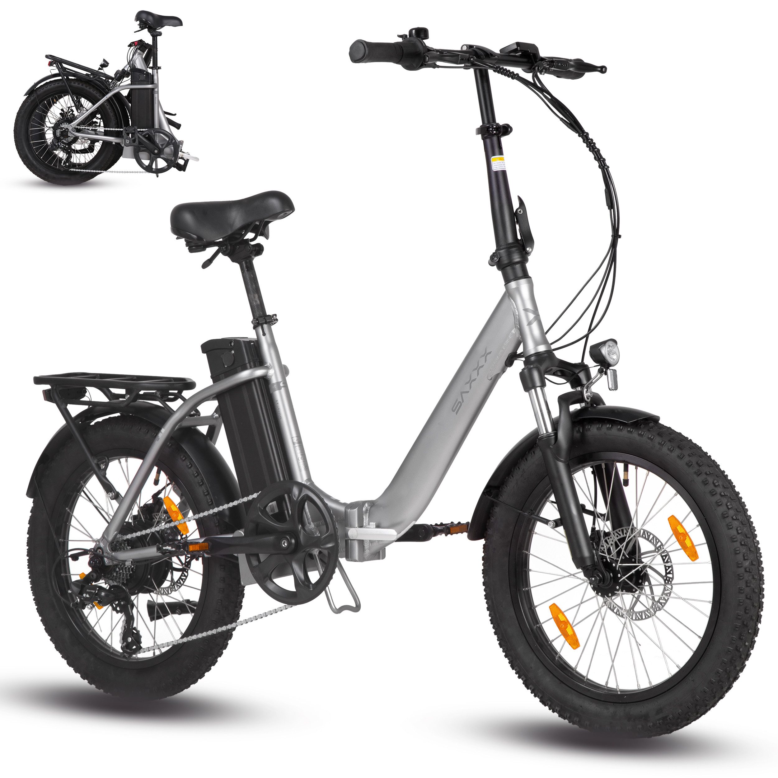 Reifen: 20×3 Zoll Breitreifen, hohe Bodenhaftung und Stabilität, geeignet für verschiedene Untergründe.