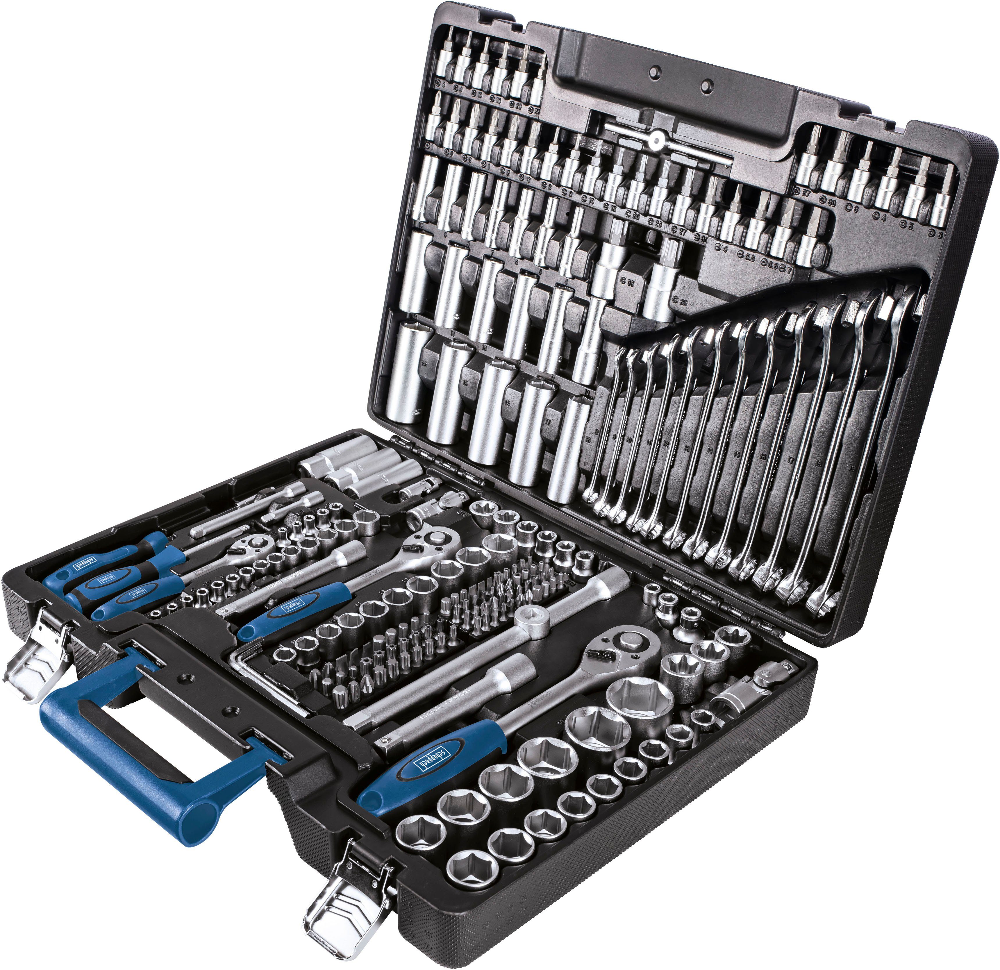 Set beinhaltet | 39 Stecknüsse, 18 Stecknüsse lang,14 Torx Aufsätze, 3 Zündkerzeneinsätze,3 Kardangelenke, 1 T-Schiebeleiste, 3 Adapter, 12 Schraubenschlüssel, 7 Innensechskantschlüssel, 1 Kunststoffbox, 5 Verlängerungsstangen, 3 Ratschengriff, 1 Spinnergriff, 1 Schraubendrehergriff, 59 Biteinsätze, 74 Bits, 7 Bithalter, 3 Umschaltknarre |