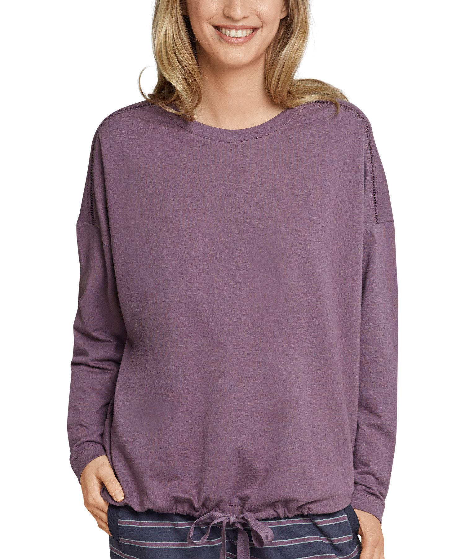 Herrlich bequem und in moderner, junger Schnittform begeistert dieses lila-farbene Langarmshirt entspannte Damen! Softe, elastische Sweatware fühlt sich dabei in Oversized-Passform lockerleicht an und erhält mit dem hübschen Hohlsaum an den Schultern, überschnittenen Ärmeln und dem breiten, regulierbaren Bindeband am Bund stimmige Details. Einfach mit der Lieblingshose mixen und in bester SCHIESSER-Qualität ausgiebig relaxen.