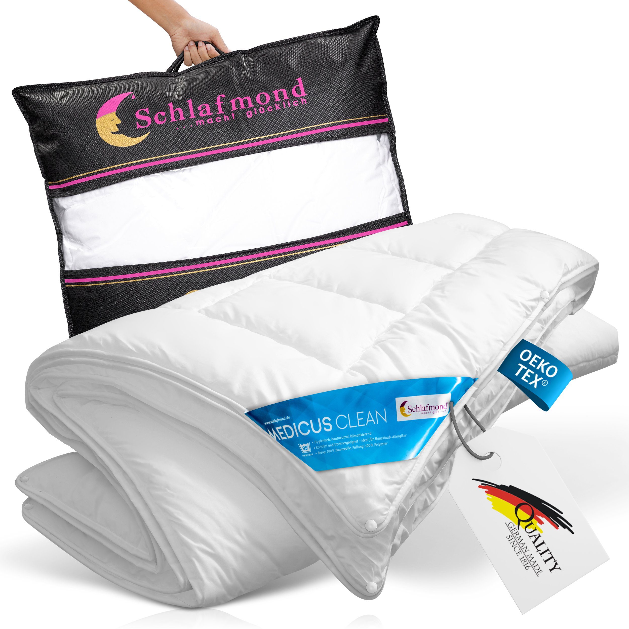 Die superkomfortable & kuschelig weiche Medicus Clean 4-Jahreszeitendecke aus einem super weichem Baumwollbezug bietet ein optimales Schlafgefühl. Dank der silikonisierten Hohlfaser HYPER-WASH sind diese Decken besonders anschmiegsam. Wärme wird durch den Einsatz einer Klimafaser bei kalten Nächten gespeichert und Hitze bei warmen Nächten nach außen abgegeben. Eine optimale Nähtechnik hilft, die Fülle der Bettdecken gleichmäßig zu halten und verhindert Verschiebungen und das Entstehen von kalten Stellen.
